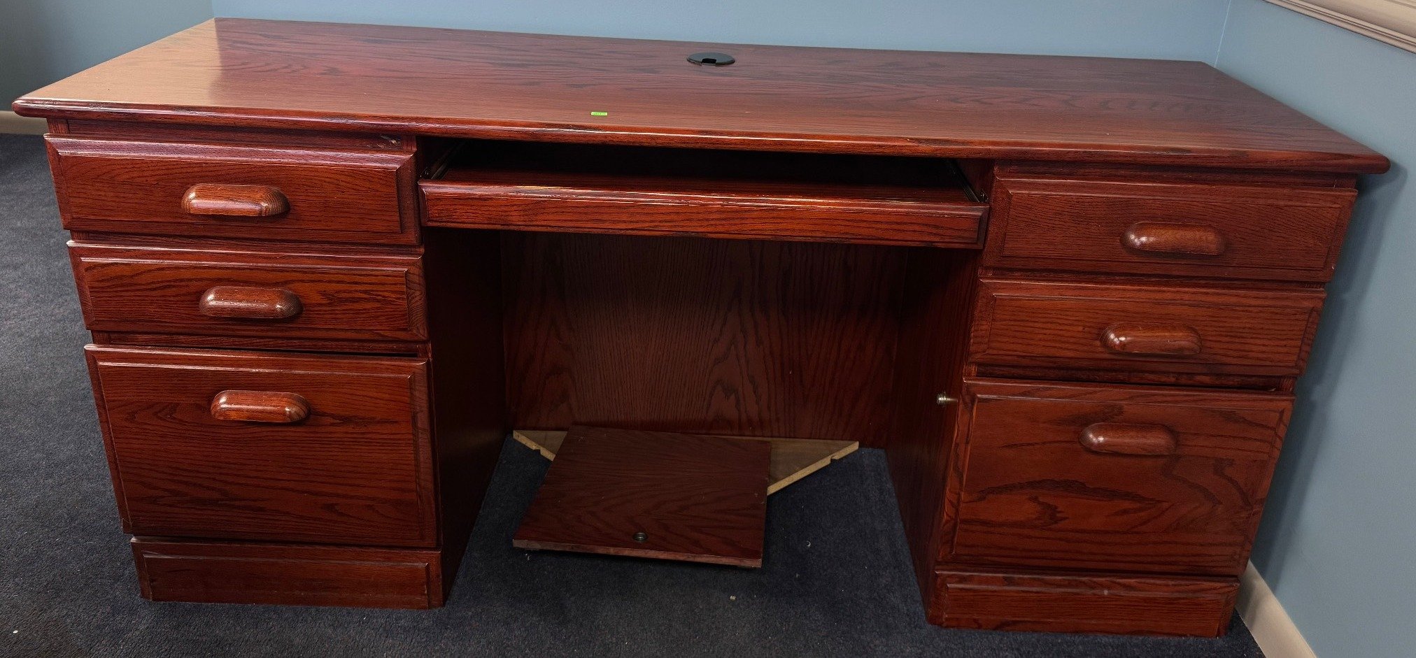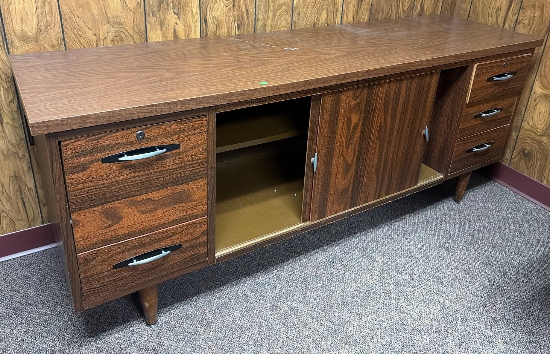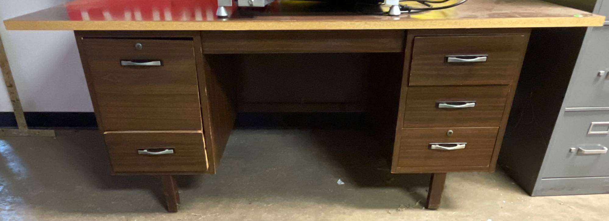 3418 Mid-Century Desk with 5 Drawers and Central Pencil Tray (71”x35”x29”) No key