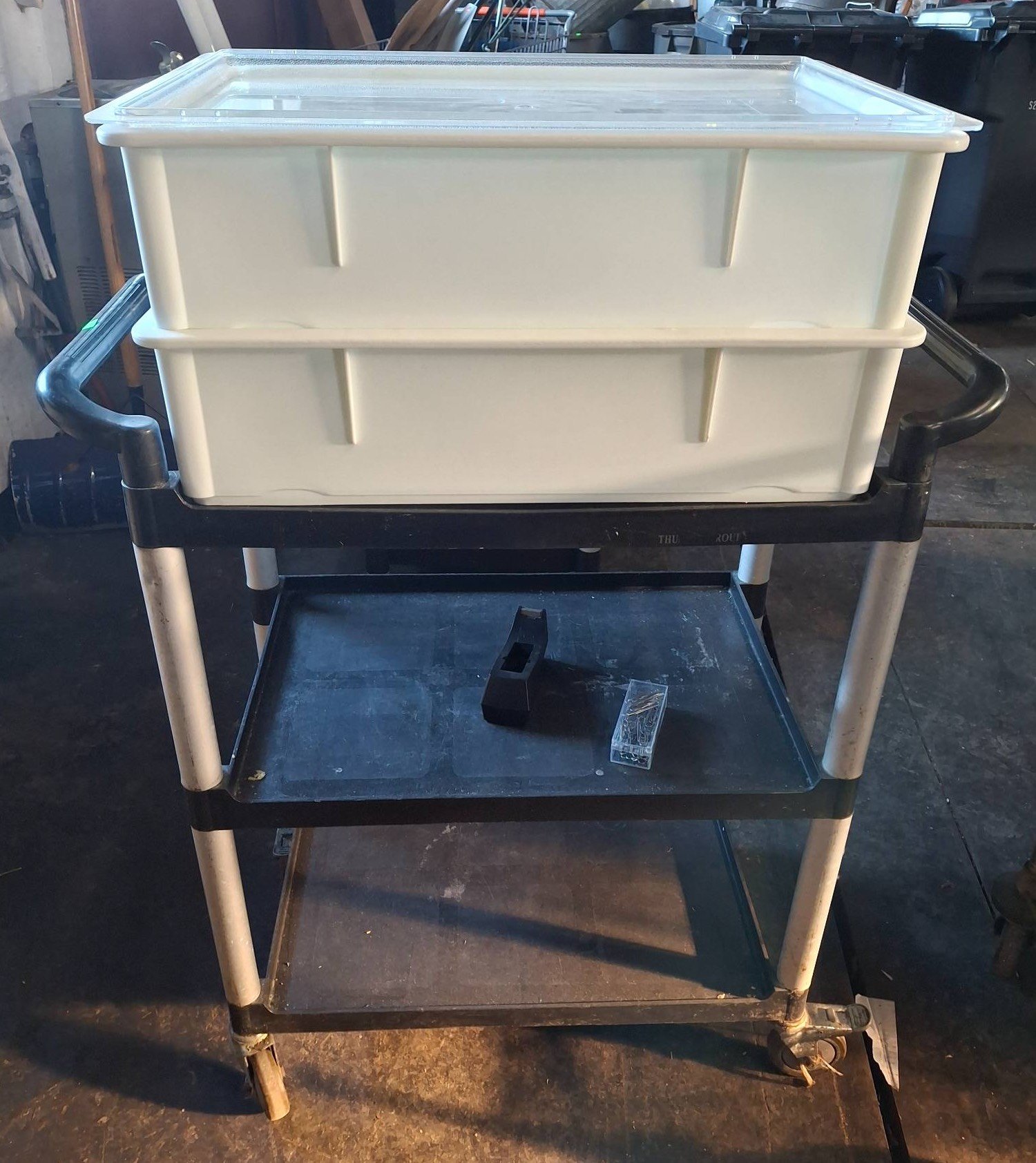 3414 Plastic Utility Table with Wire Shelves, 29”x24”x27”