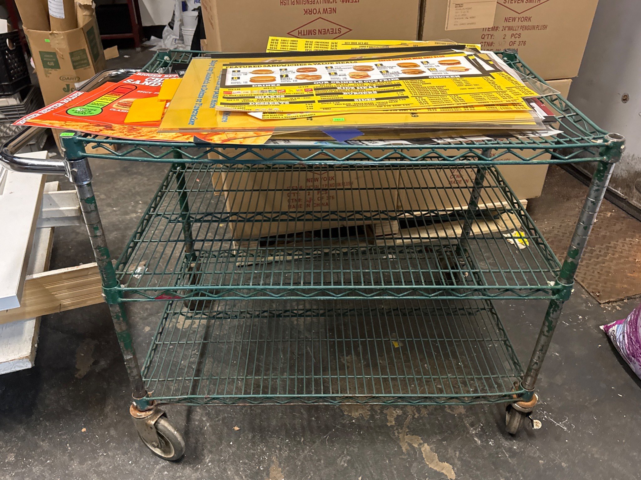 3413 Steelmaster Black Metal Utility Cart on Casters, 26.5”x22”x17”