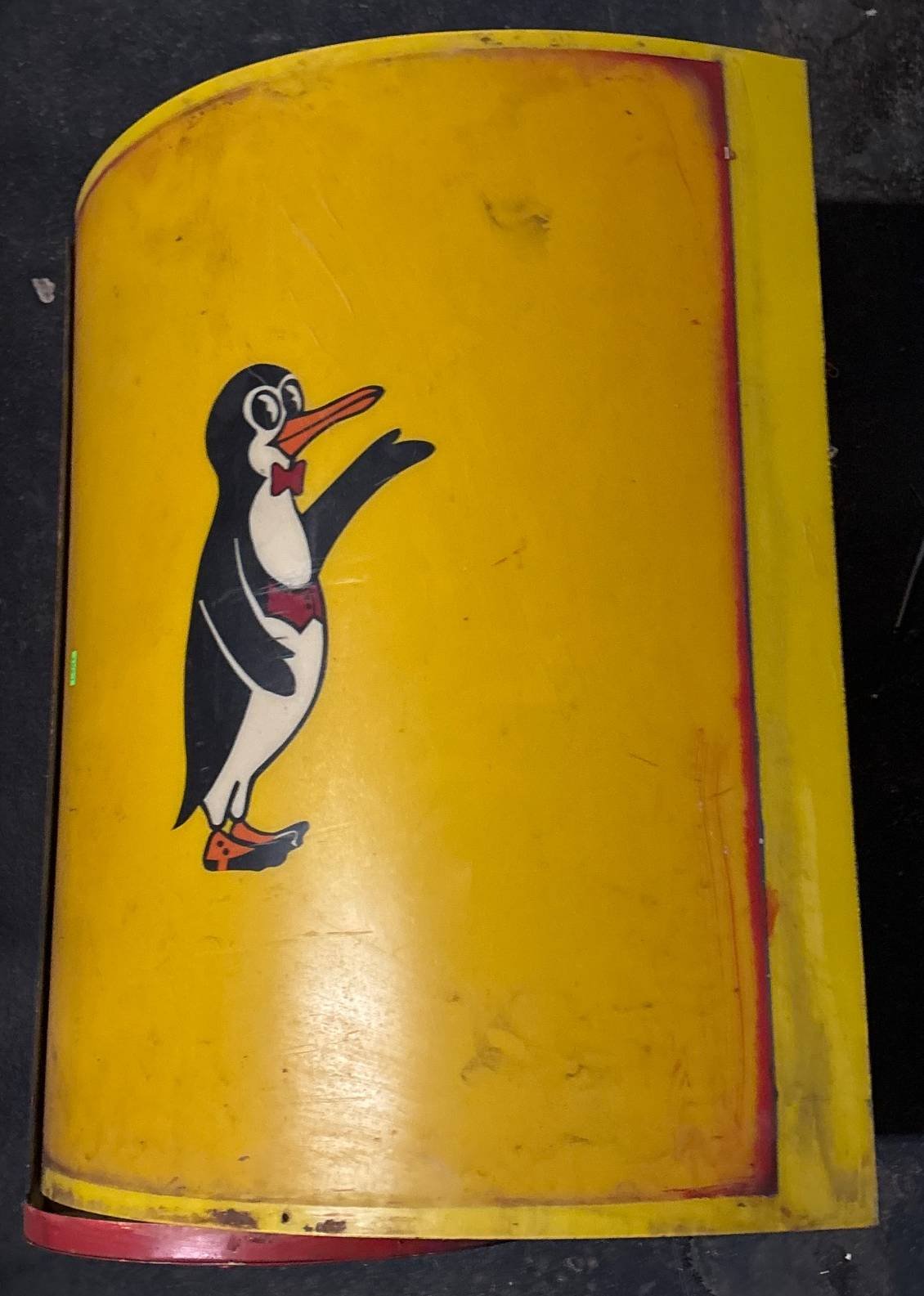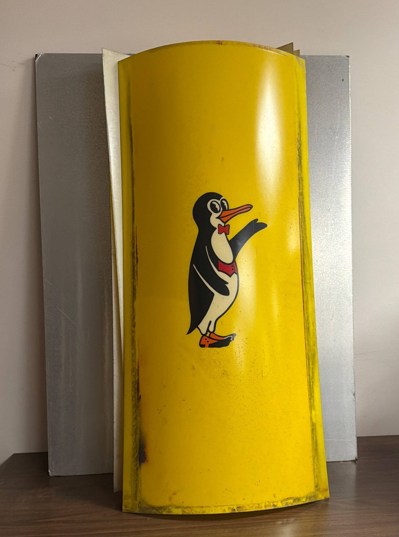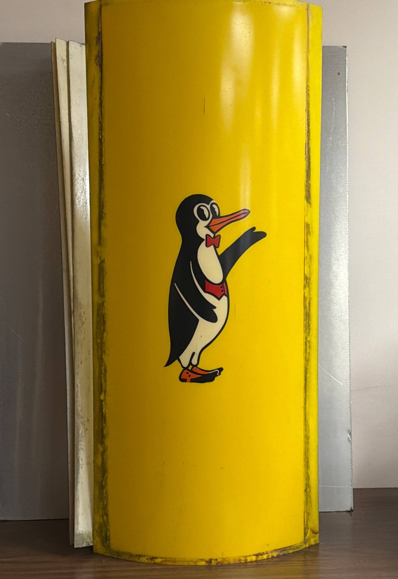 7082 Yellow Metal Panel with Penguin Illustration