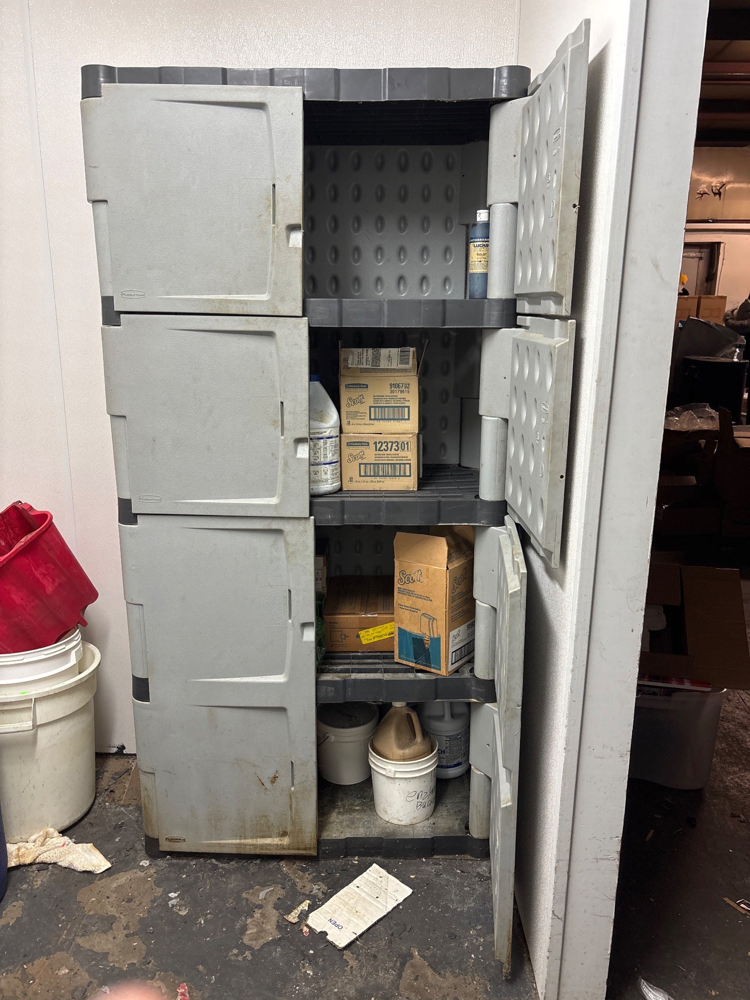 106 Plastic Storage Cabinet with Double Doors and 4 Interior Shelves 25.5 x 17.5 x 69