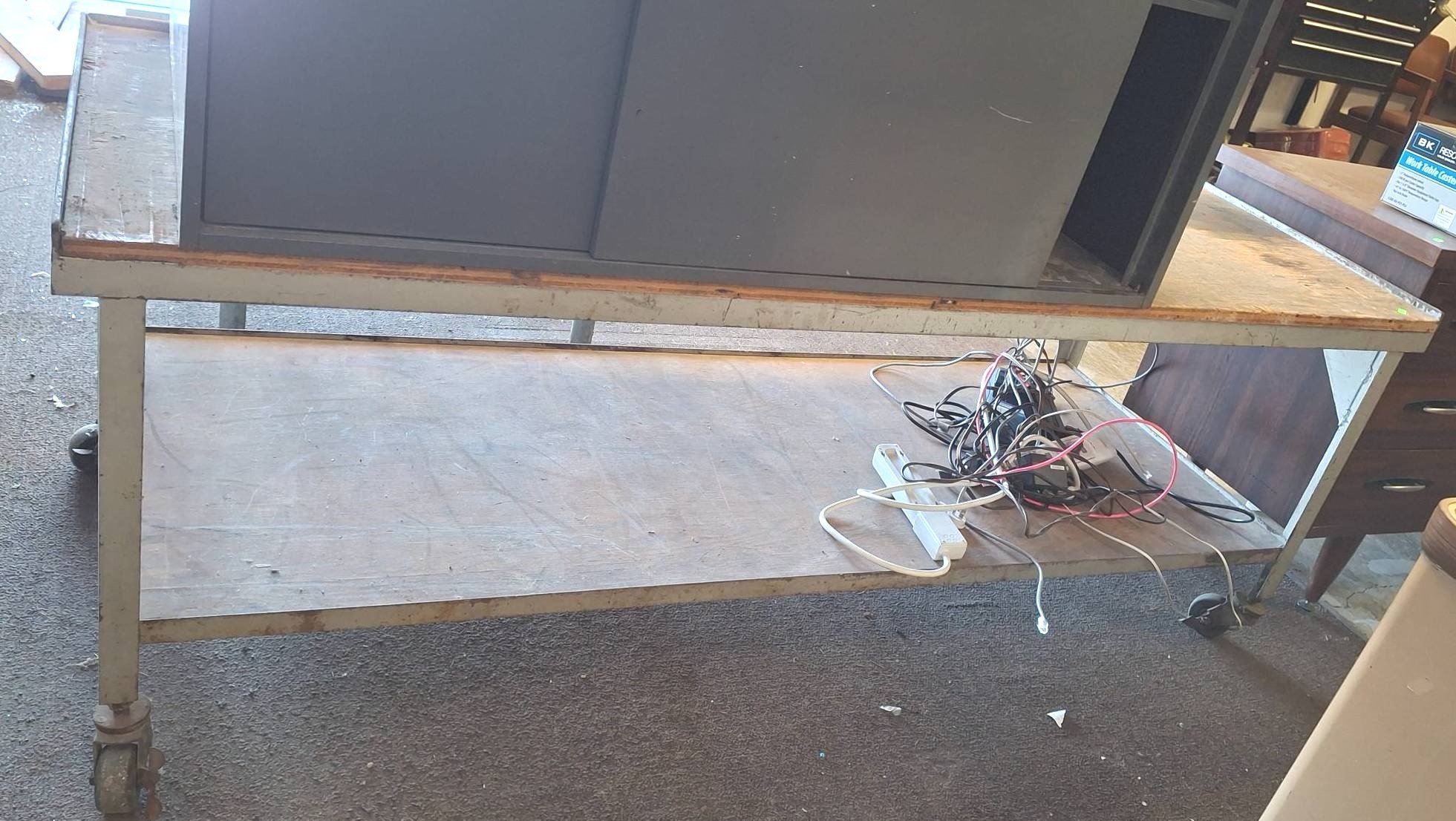3404 Rolling Desk with Wood Grain Finish and Metal Base 46? x 24? x 26?