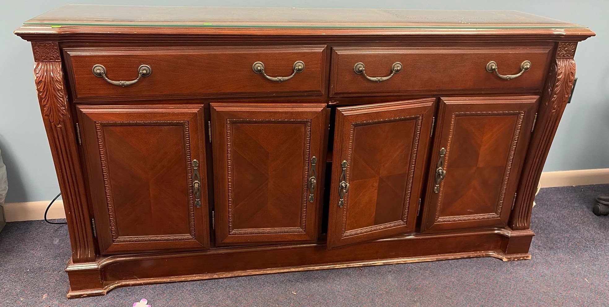 3303 Brown Wood Sideboard With Drawers and Central Sliding Door Storage, 72”x20”x29”