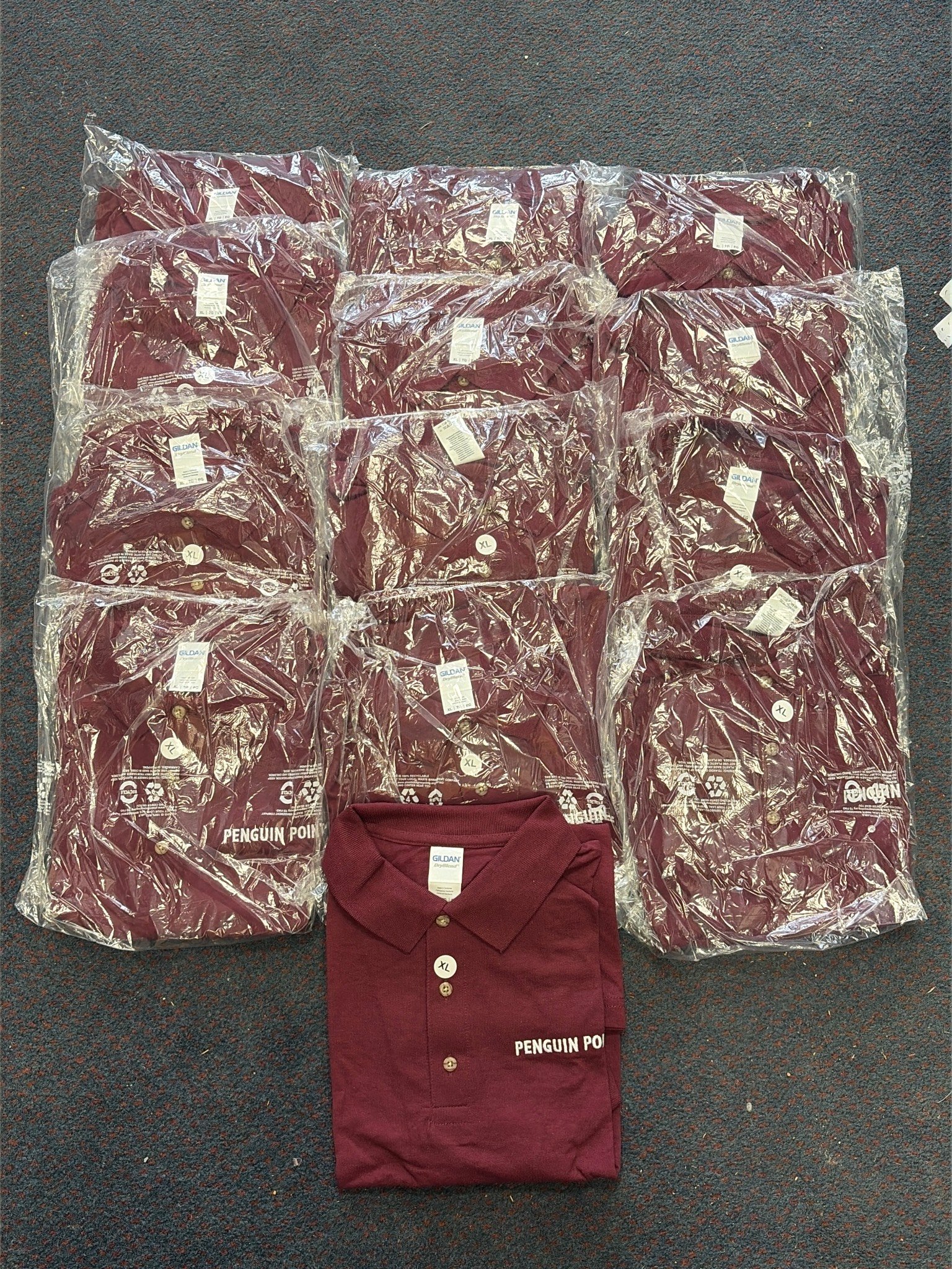 2866 13 Gildan Maroon XL Penguin Point Polo Shirts new in Packaging