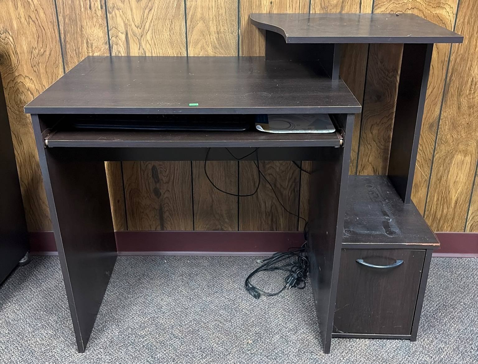3301 Dark Brown Laminate Computer Desk Inc. Pull-Out Keyboard Tray & Storage, Contents Included, 40”x20”x34”