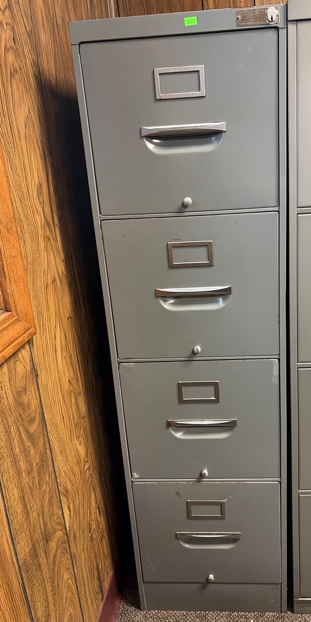 3306 Lyon 4-Drawer Metal Filing Cabinet with Rust Stains on Top, No Key, 28”x14”x52”