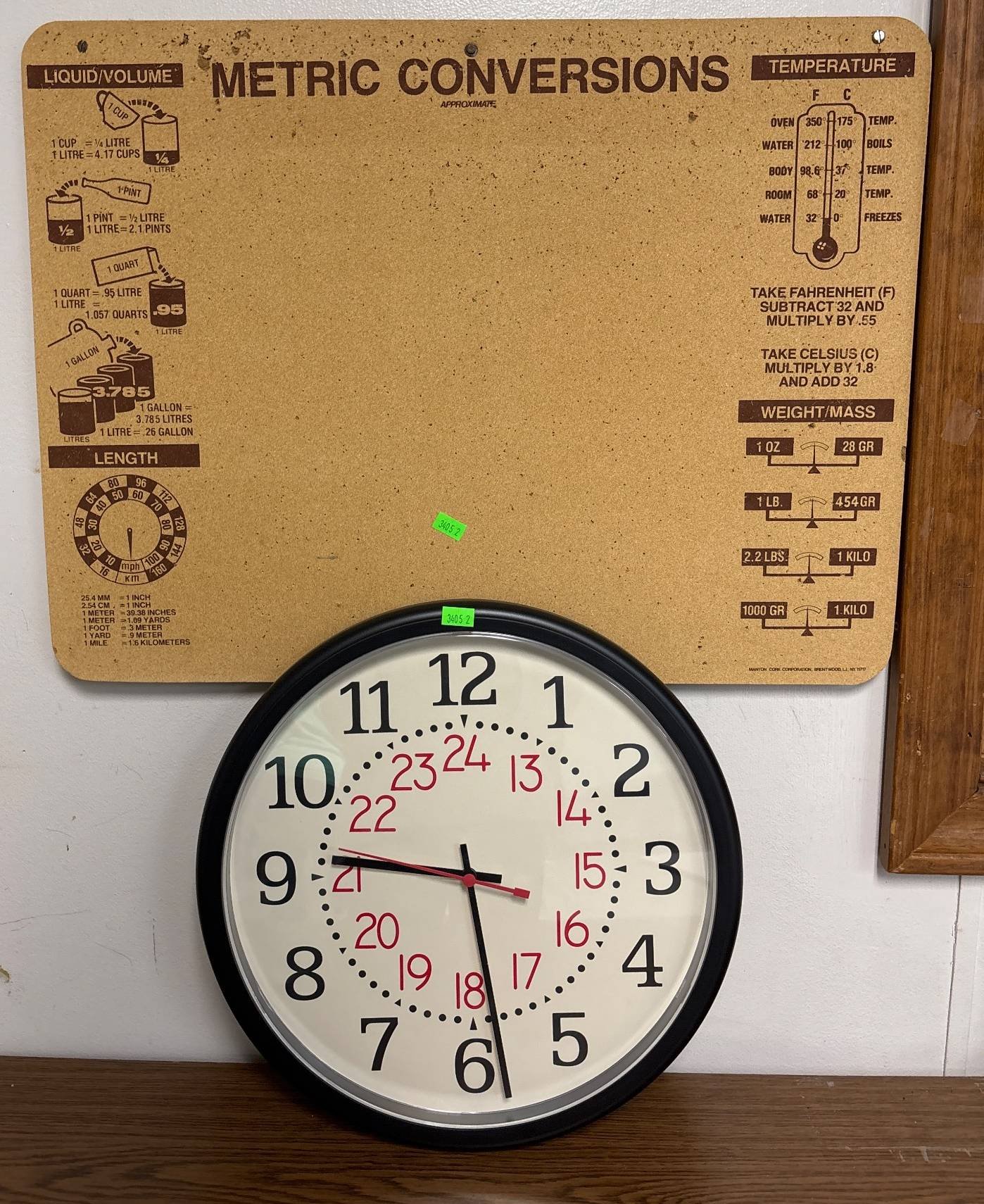 3405 Wall Clock with 24-Hour Markings and Metric Conversion Corkboard 13.5-Inch , 21×16-Inch Untested