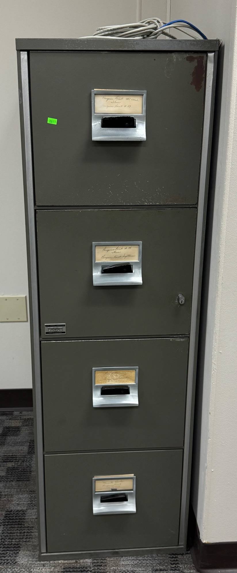 3501 4-Drawer Fire-Resistant Filing Cabinet by Rem Rand Inc., Signed Photo of Wally the Penguin 54? x 30? 17?,