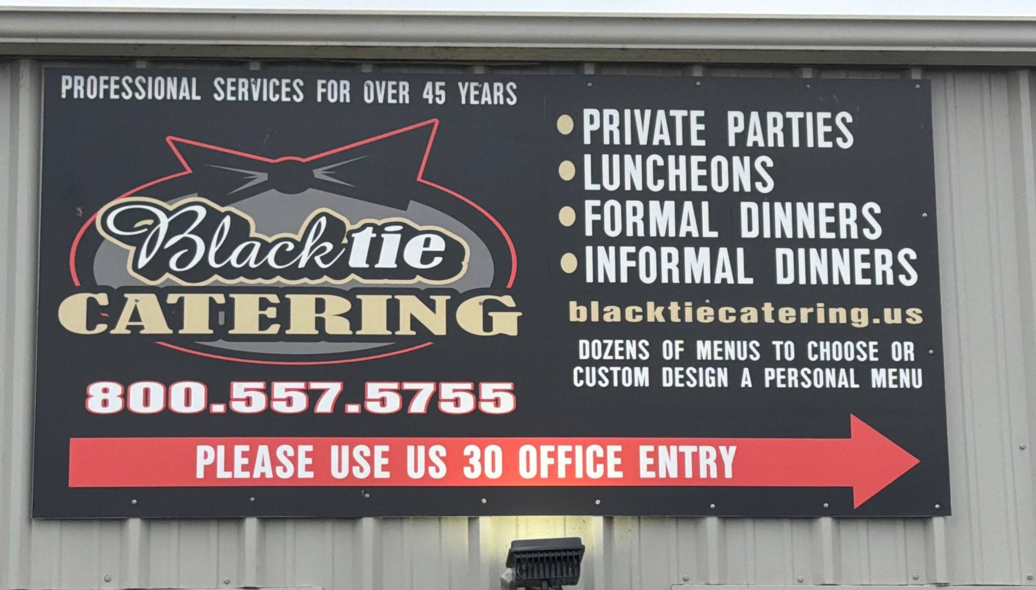 7073 Black Tie Catering Exterior Sign With Service Information