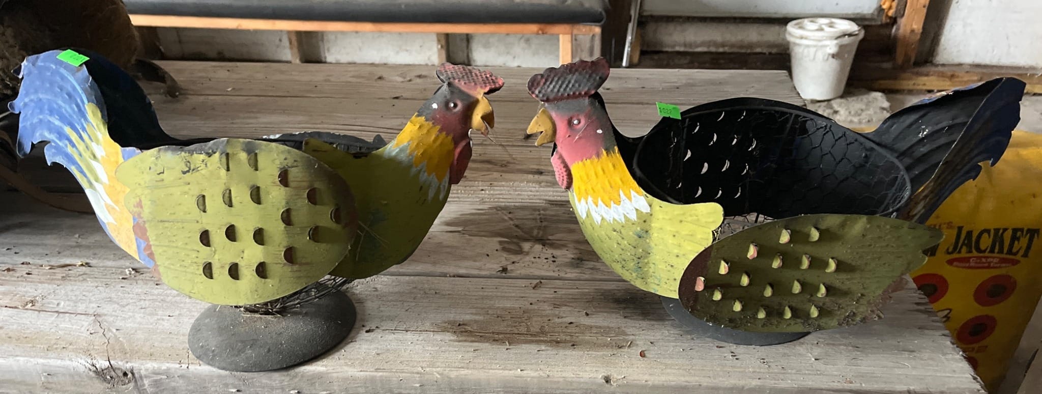 1022 Metal Rooster-Shaped Planters with Perforated Sides