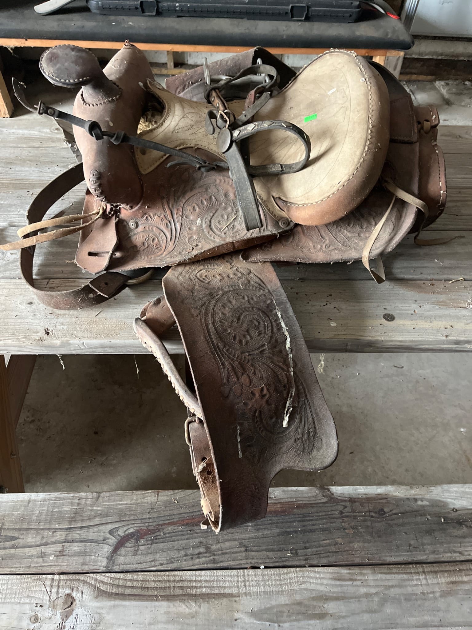 1023 Tooled Leather Western Saddle with Tack and Accessories