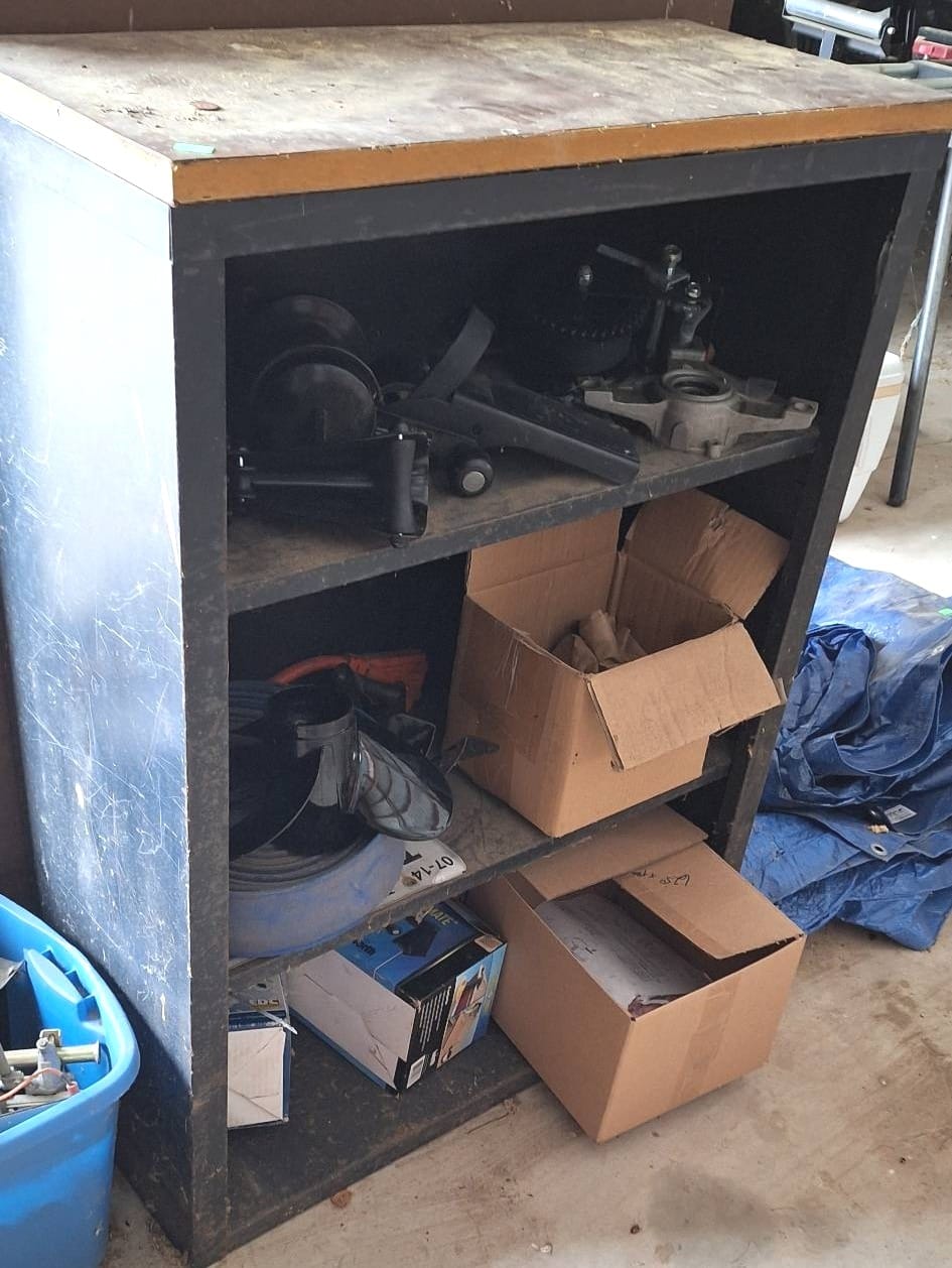 1074 Metal Storage Shelf with Tools and Components inc. Rotors, Belts and Hardware 30x35x12?