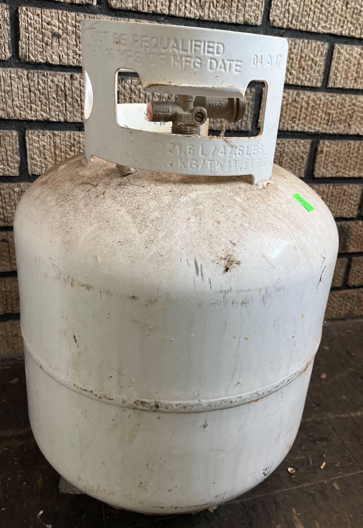 1044 100lb Propane Tank with Brass Valve – Possibly Half Full