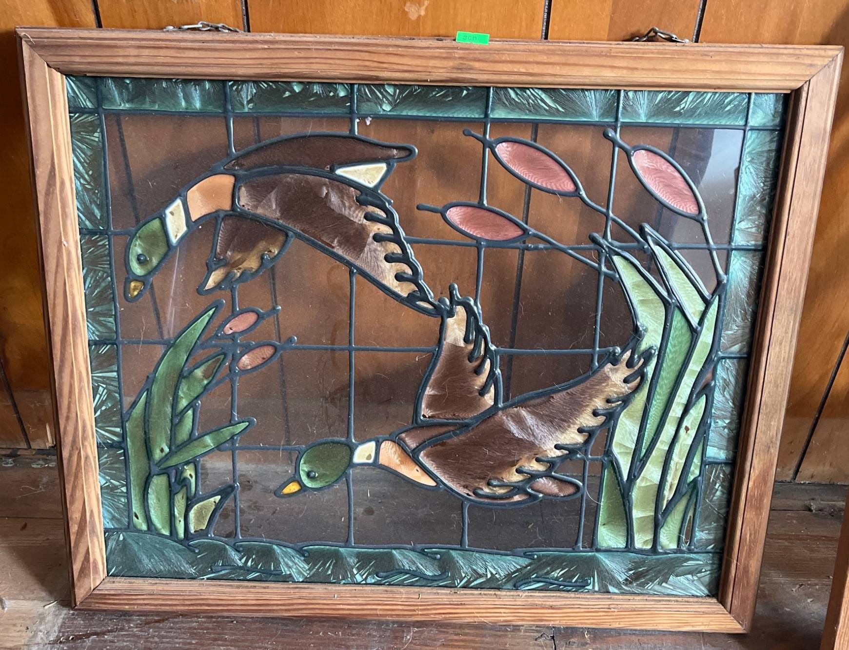 302 Stained Glass Panel with Flying Duck and Cattail Design 23.25×33.25?