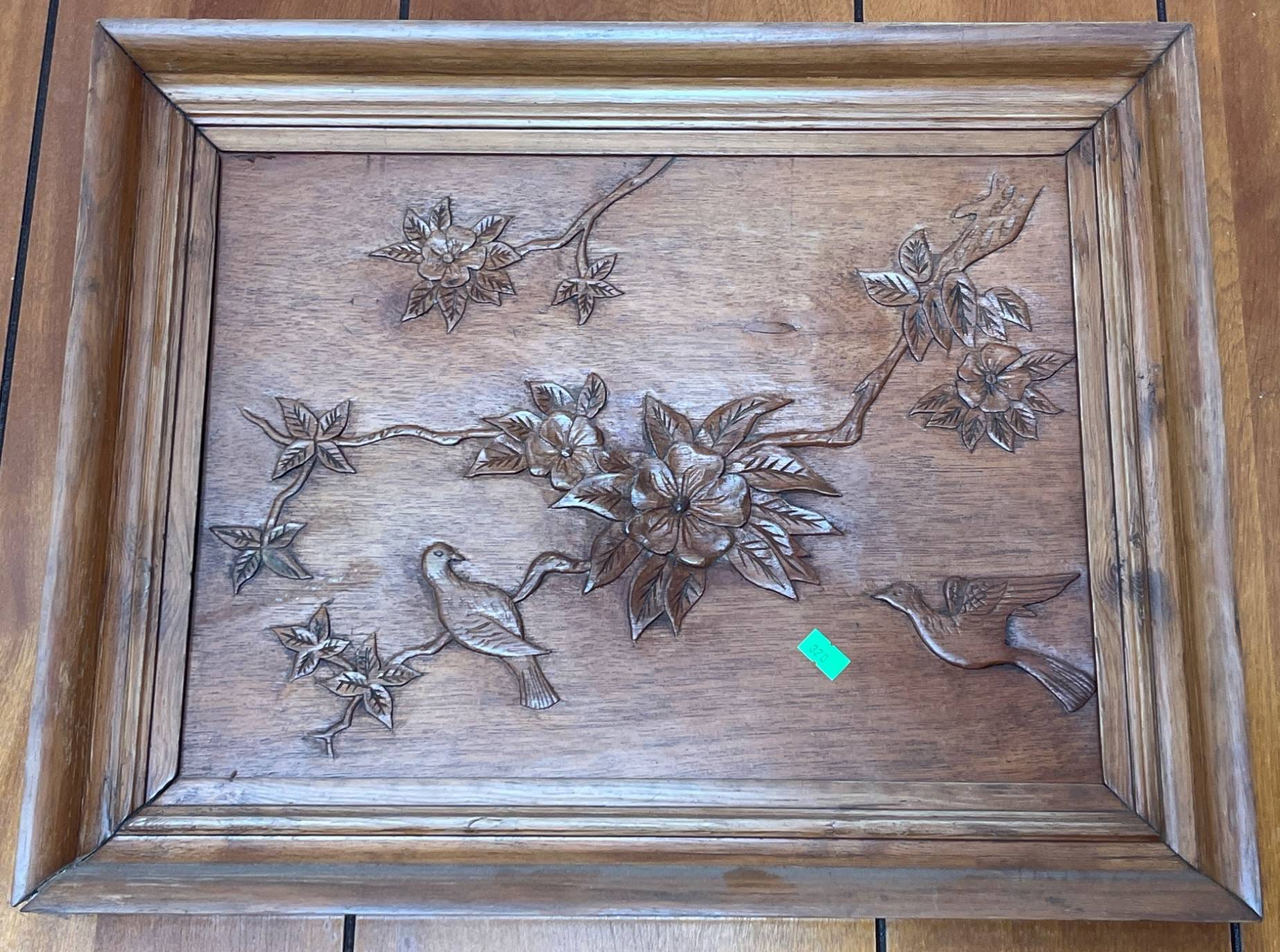 320 Rectangular Carved Wood Panel with Bird and Floral Motif, 20×16