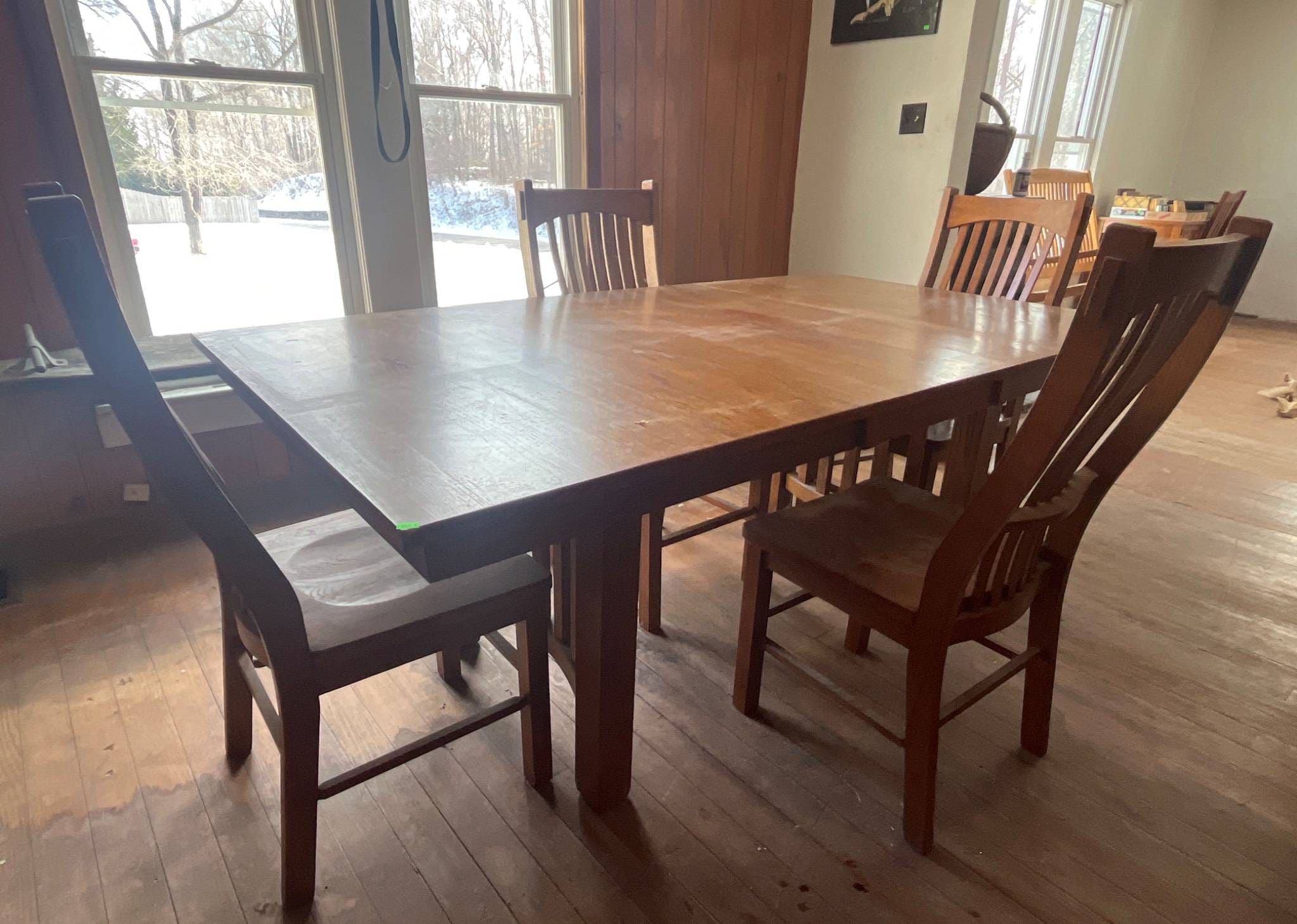 324 Mission Dining Table with 1 Leaf and 4 Slat-Back Chairs 77x42x30?
