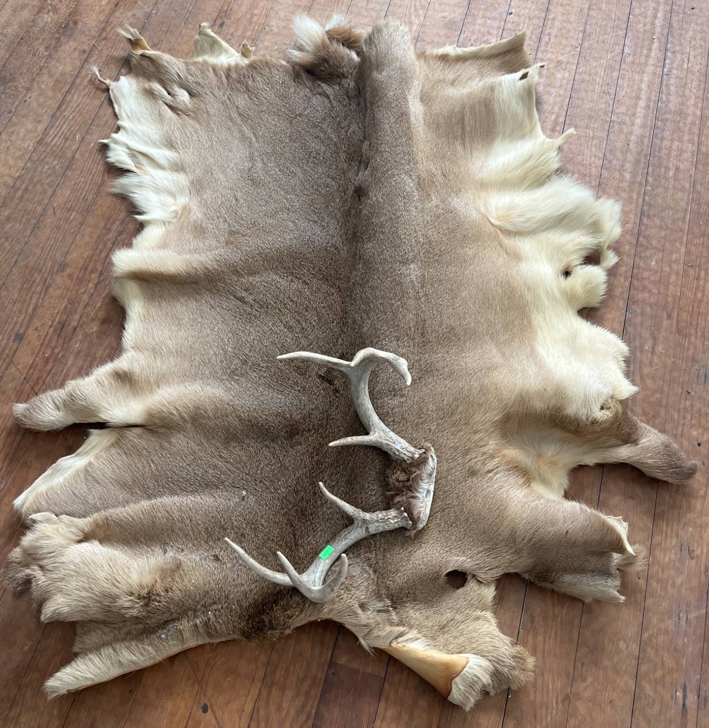 203 Mounted Deer Antlers with 14” Spread on Wood Plaque