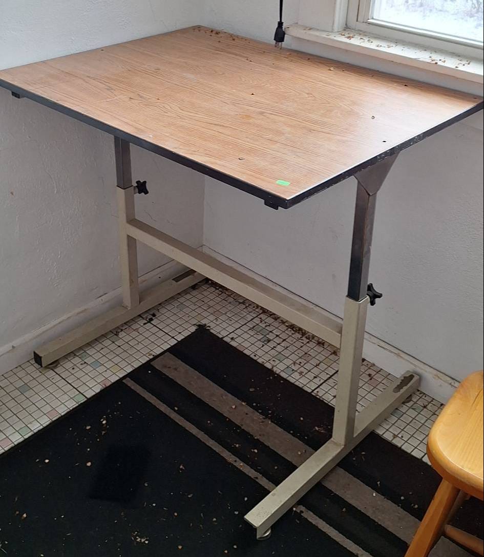 720 Desk with Drawer, Office Chair, and 2 Canon Printers