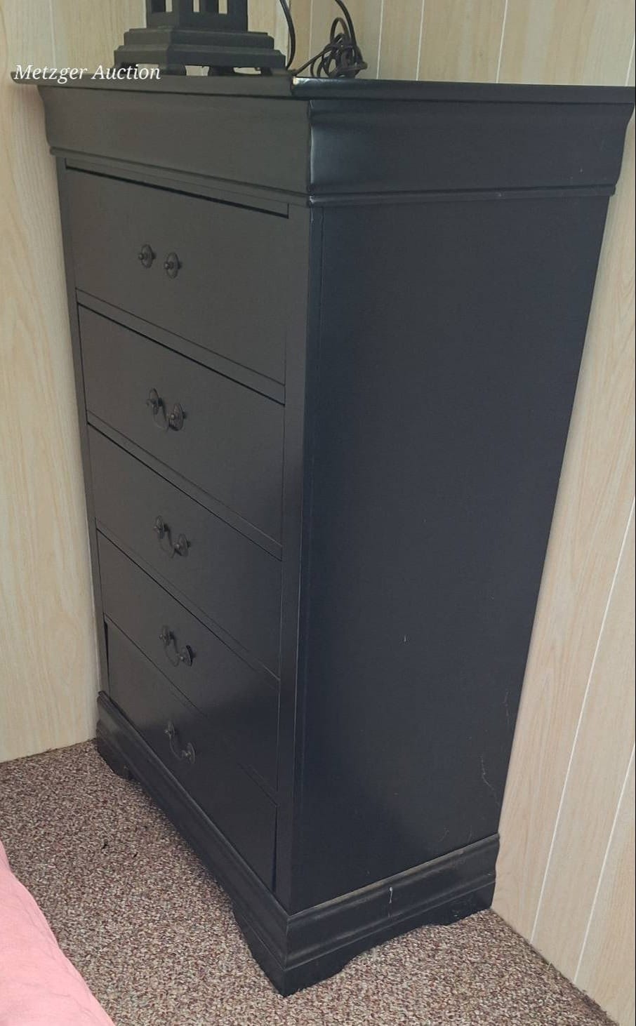 710 Black 5-Drawer Chest with Metal Pulls 18x33x48?