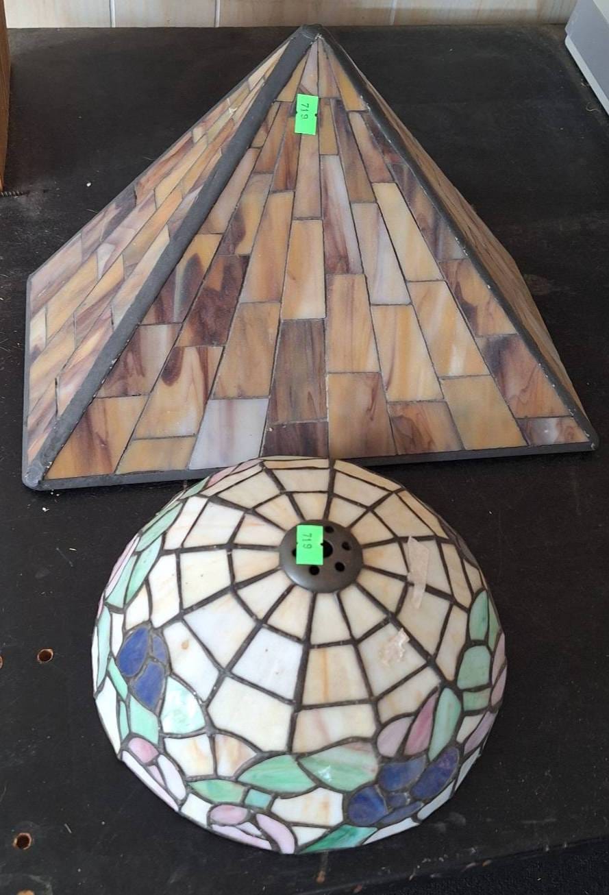 719 Leaded-Style Glass Lamp Shade 7? and Pyramid Stained Glass Lamp Shade 14x7x7?