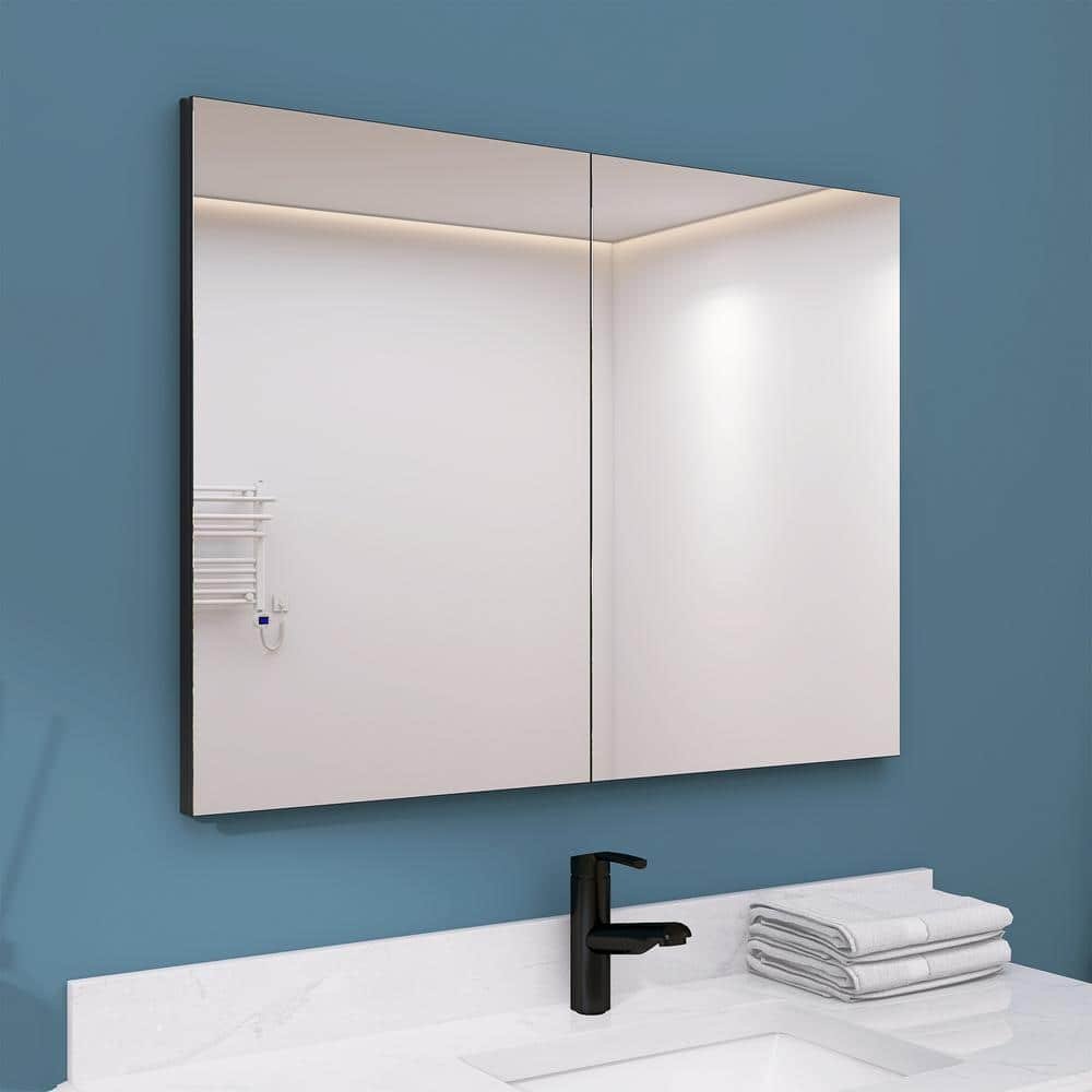 671031 NTQ - Tyn 40 in. W x 30 in. H Rectangular Aluminum Recessed/Surface Mount Black Medicine Cabinet with Mirror And Glass Shelves