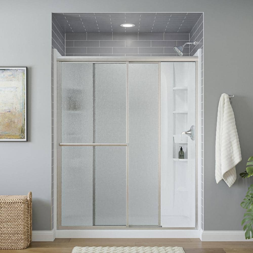 671055 STERLING - Deluxe 55-60 in. W x 70 in. H Framed Sliding Shower Door in Silver with 1/8 in. Thick Rain Glass