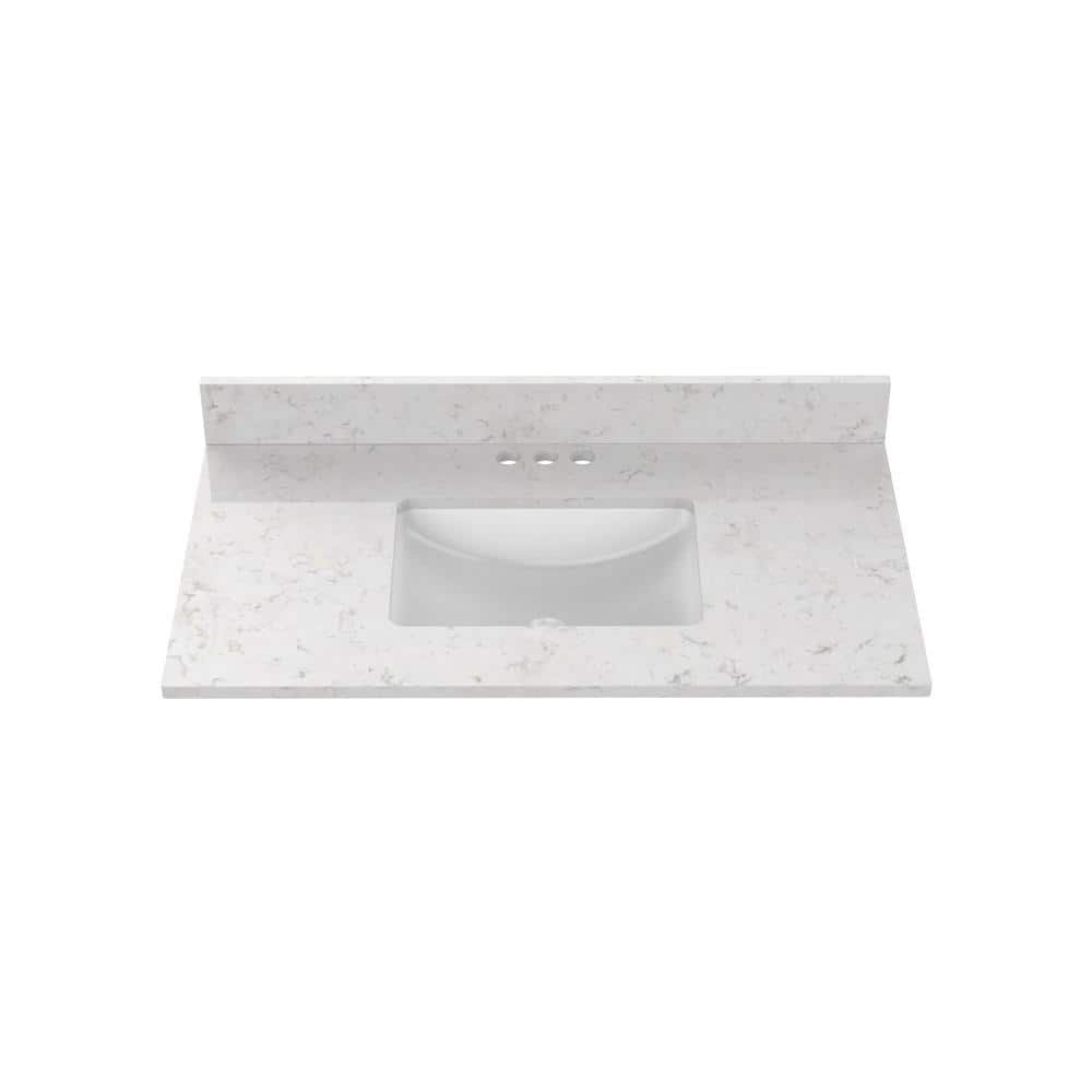671063 HOME DECORATORS COLLECTION - 37 in. W x 22 in D Quartz white Rectangular Single Sink Vanity Top in Snow Orchid