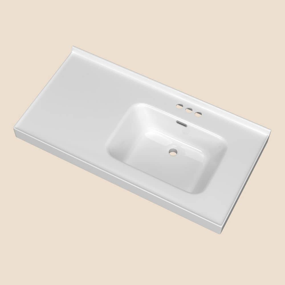 671069 GETPRO - Solid Surface White Rectangular Single Sink Bath Vanity Top with Backsplash for 42 in. Bath Cabinet( just sink)