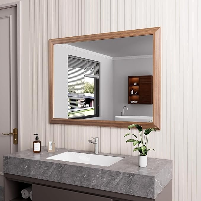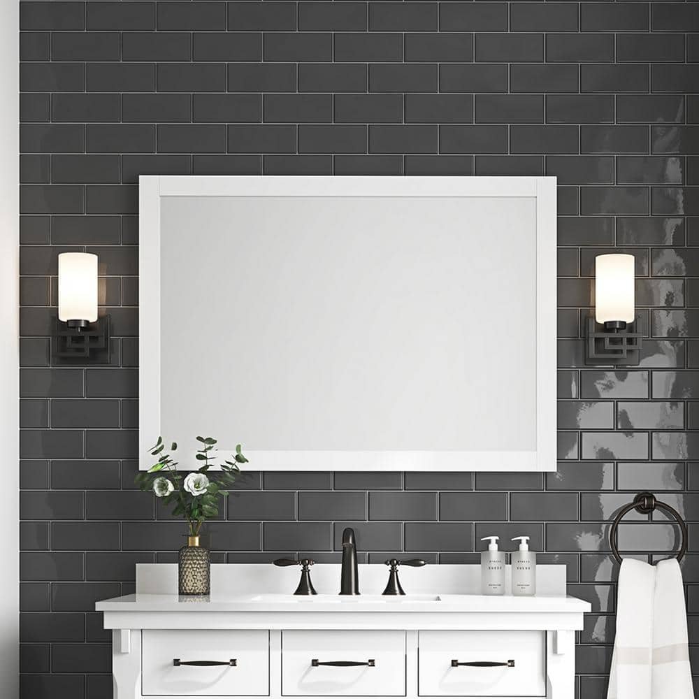 671074 HOME DECORATORS COLLECTION - Bellington 40 in. W x 28 in. H Rectangular Framed Wall Mount Bathroom Vanity Mirror in White