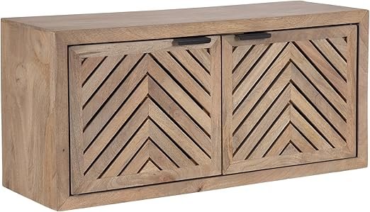 671085 - Kate and Laurel Mezzeta Decorative Two-Door Wall Cabinet, 30 x 10 x 14, Beige, Decorative Modern Storage Cabinet