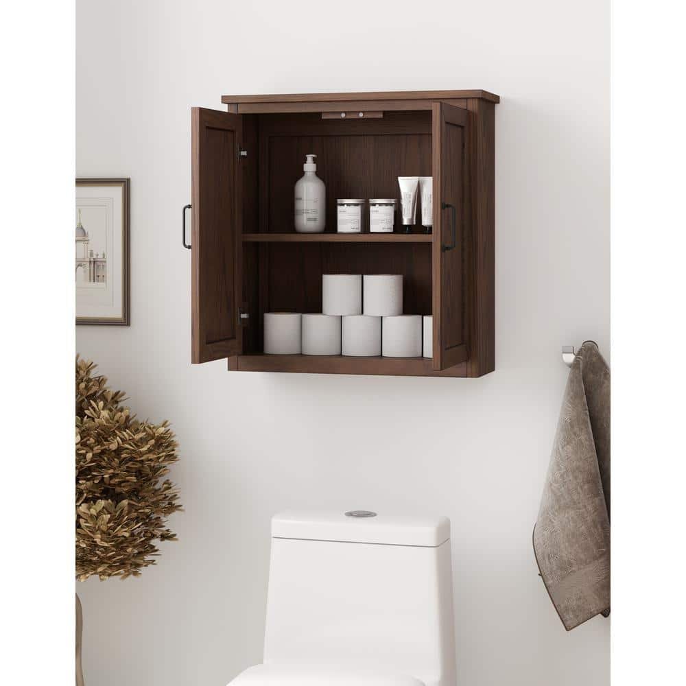 671086 HOME DECORATORS COLLECTION - Alster 25 in. W x 26 in. D x 8 in. H Bathroom Storage Wall Cabinet in Brown Oak