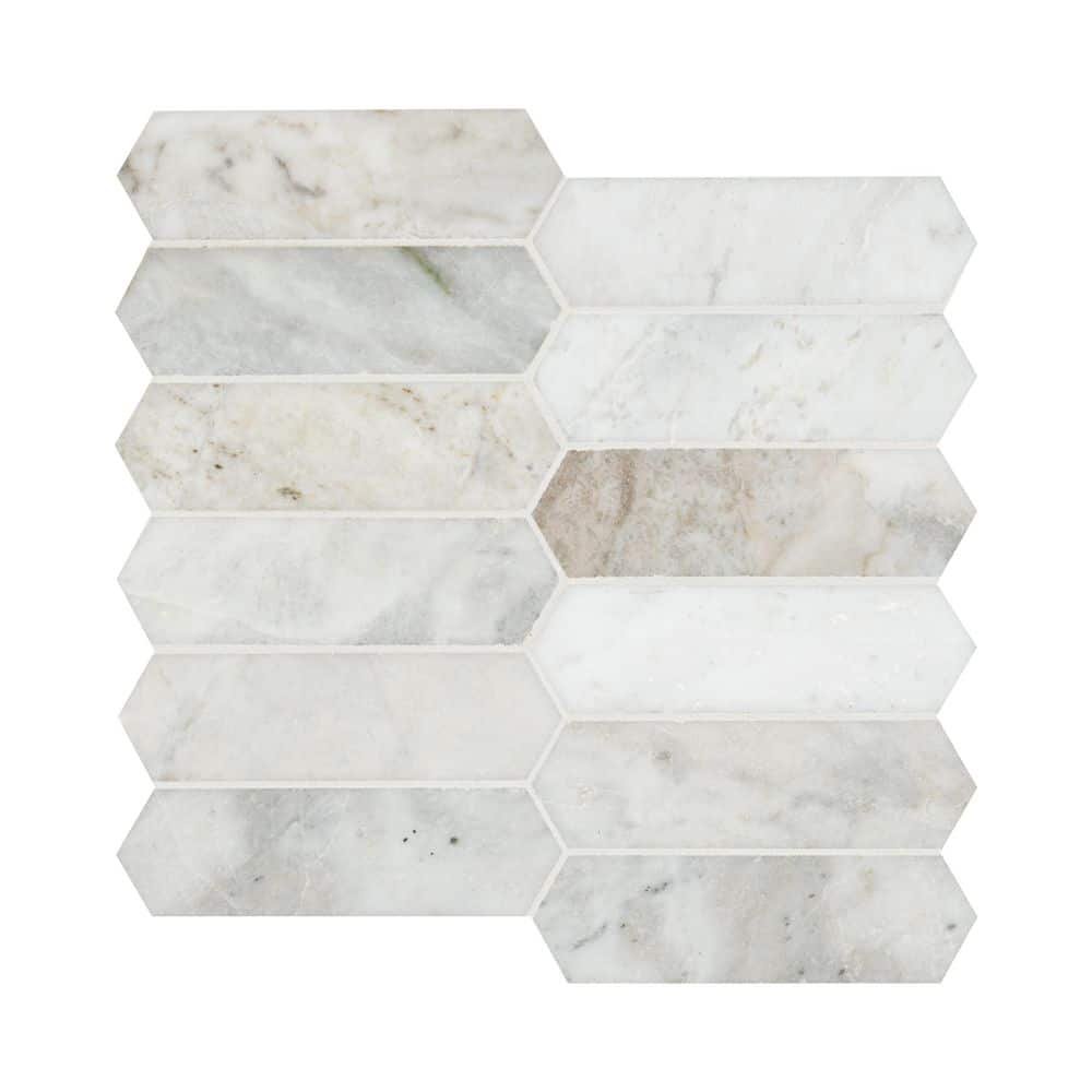 671090 MSI - Arabescato Venato White Picket 12 in. x 12 in. x 0.38 in. Honed Marble Mesh-Mounted Mosaic Tile (9.8 sq.ft./Case)