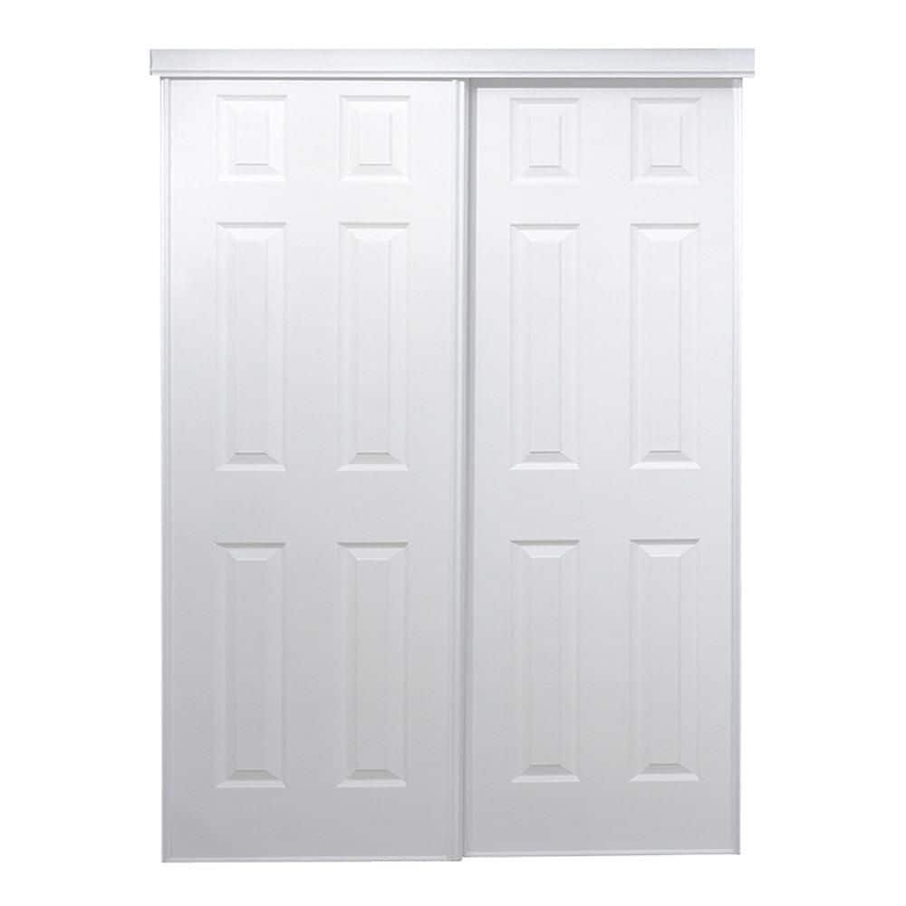 671089 MASONITE - 28 in. x 80 in. 6 Panel Left-Handed Primed Composite Solid Core Single Prehung Interior Door 4-9/16 in. Flat Jamb