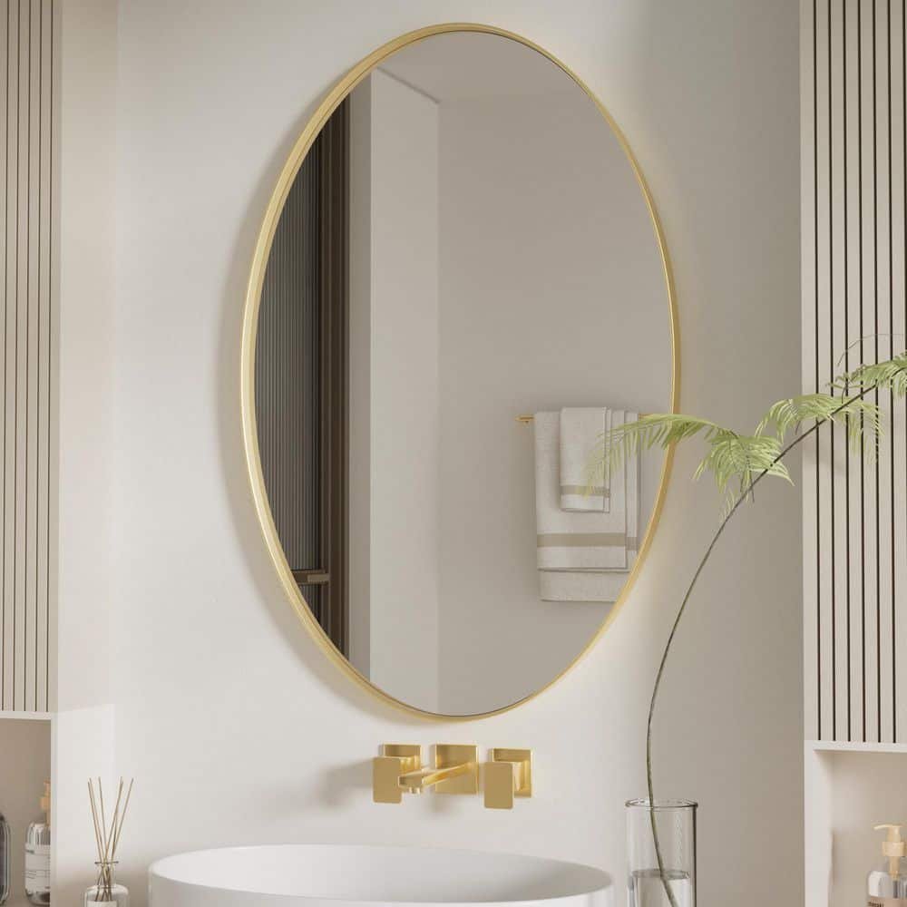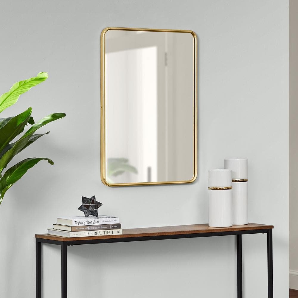 671078 KEONJINN - 30 in. W x 32 in. H Rectangular Gold Metal Framed Beveled Surface Mount/Recessed Medicine Cabinet with Mirror