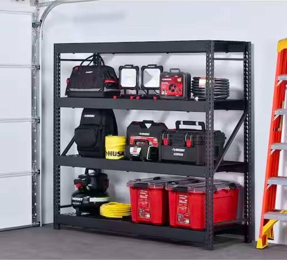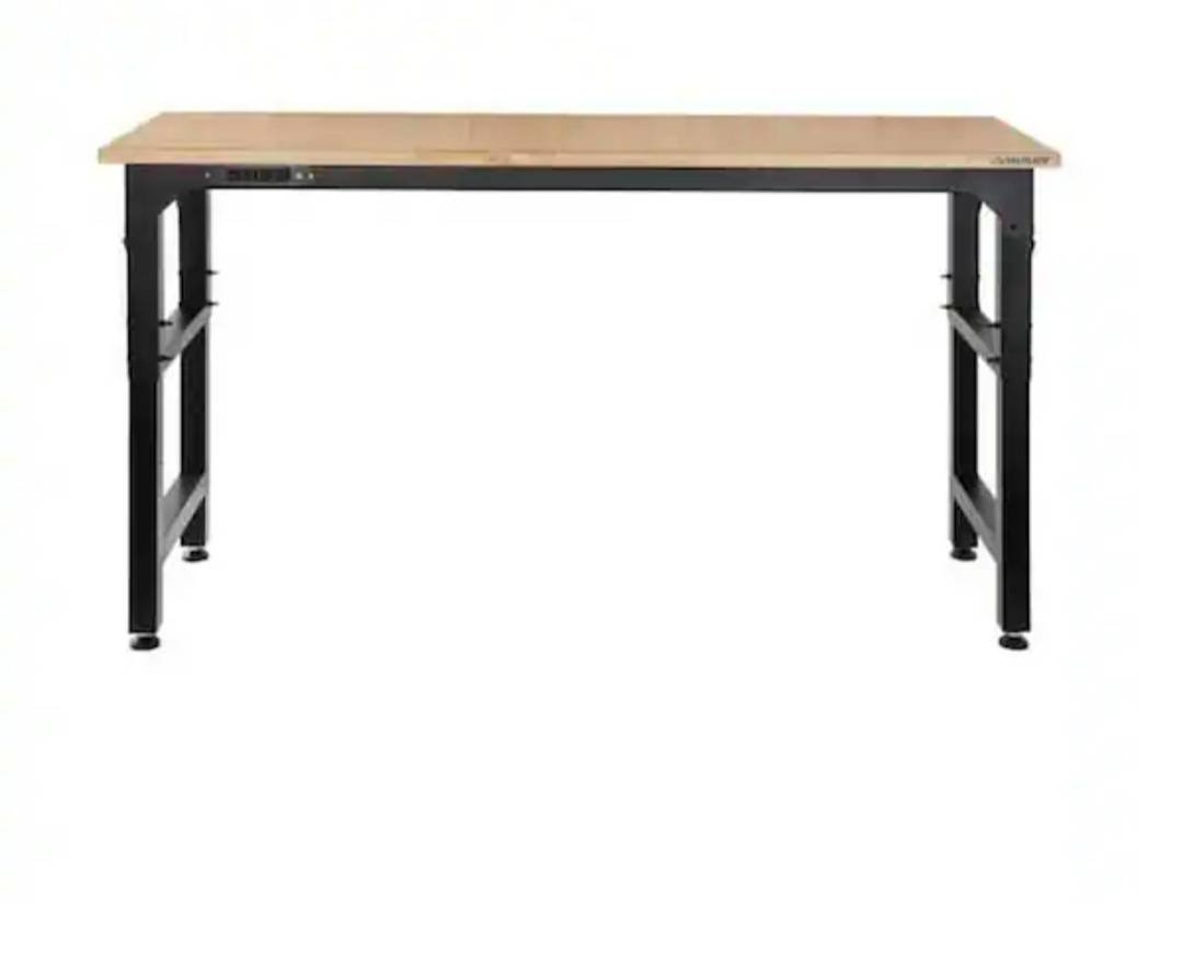 10 Husky 72 in. W x 23 in. D Adjustable Height Black Workbench With Solid Wood Top