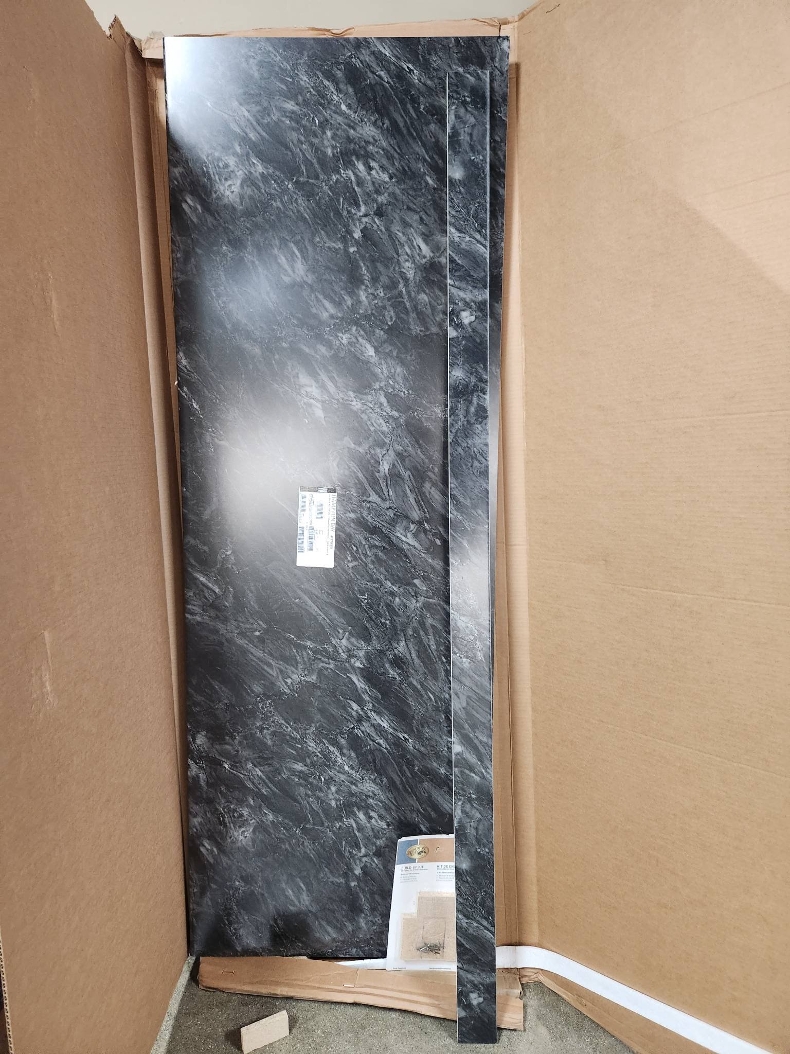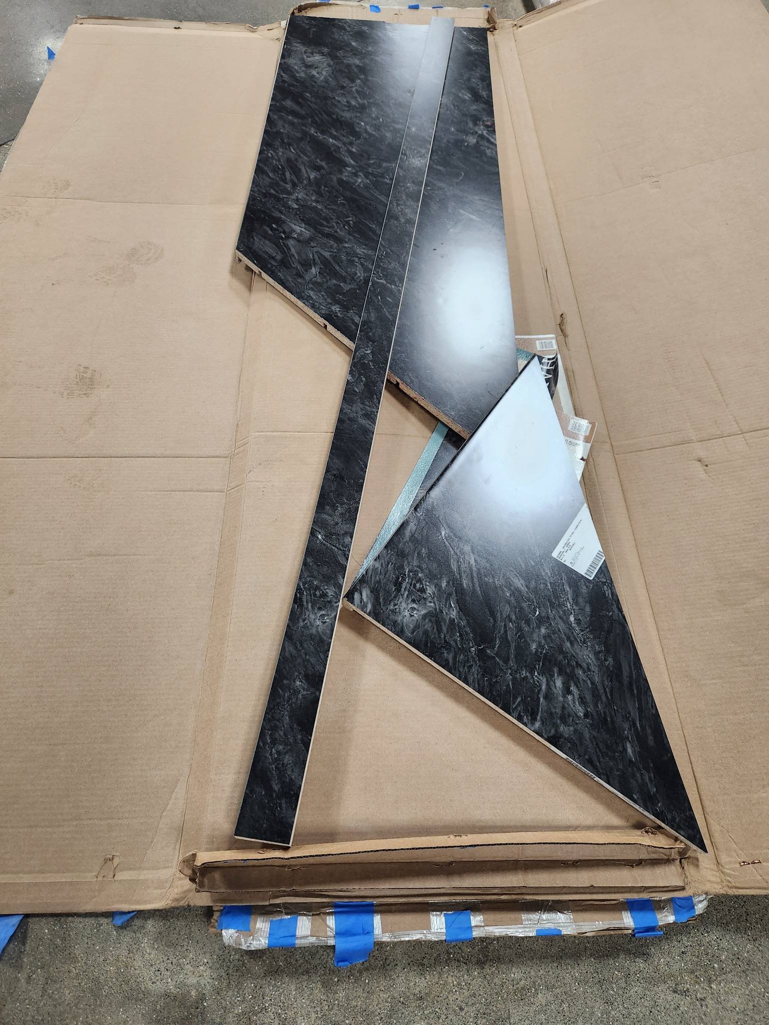 1002 2 Boxes of Pre-Cut Black Countertop Material with Edge Damage