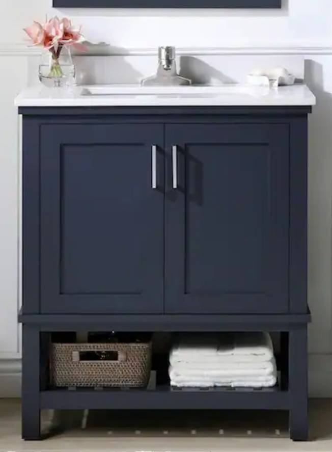 22 Home Decorators Collection Tupelo 30 in. Single Sink Midnight Blue Bath Vanity with White Engineered Stone Top (Assembled)