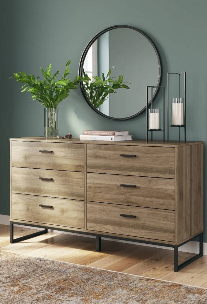30 Signature Design by Ashley Deanlow 6 Drawer Dresser in Honey Brown Finish