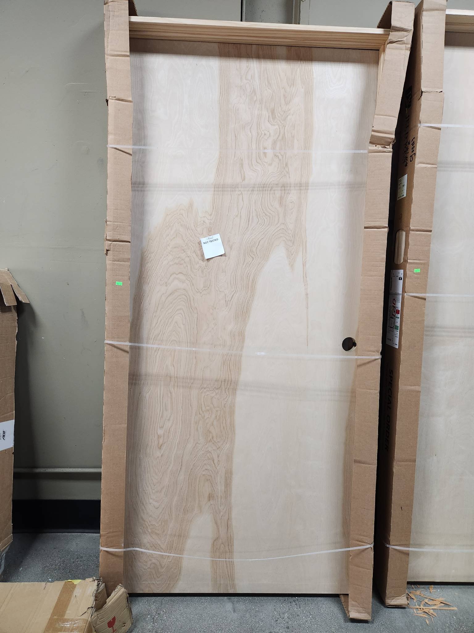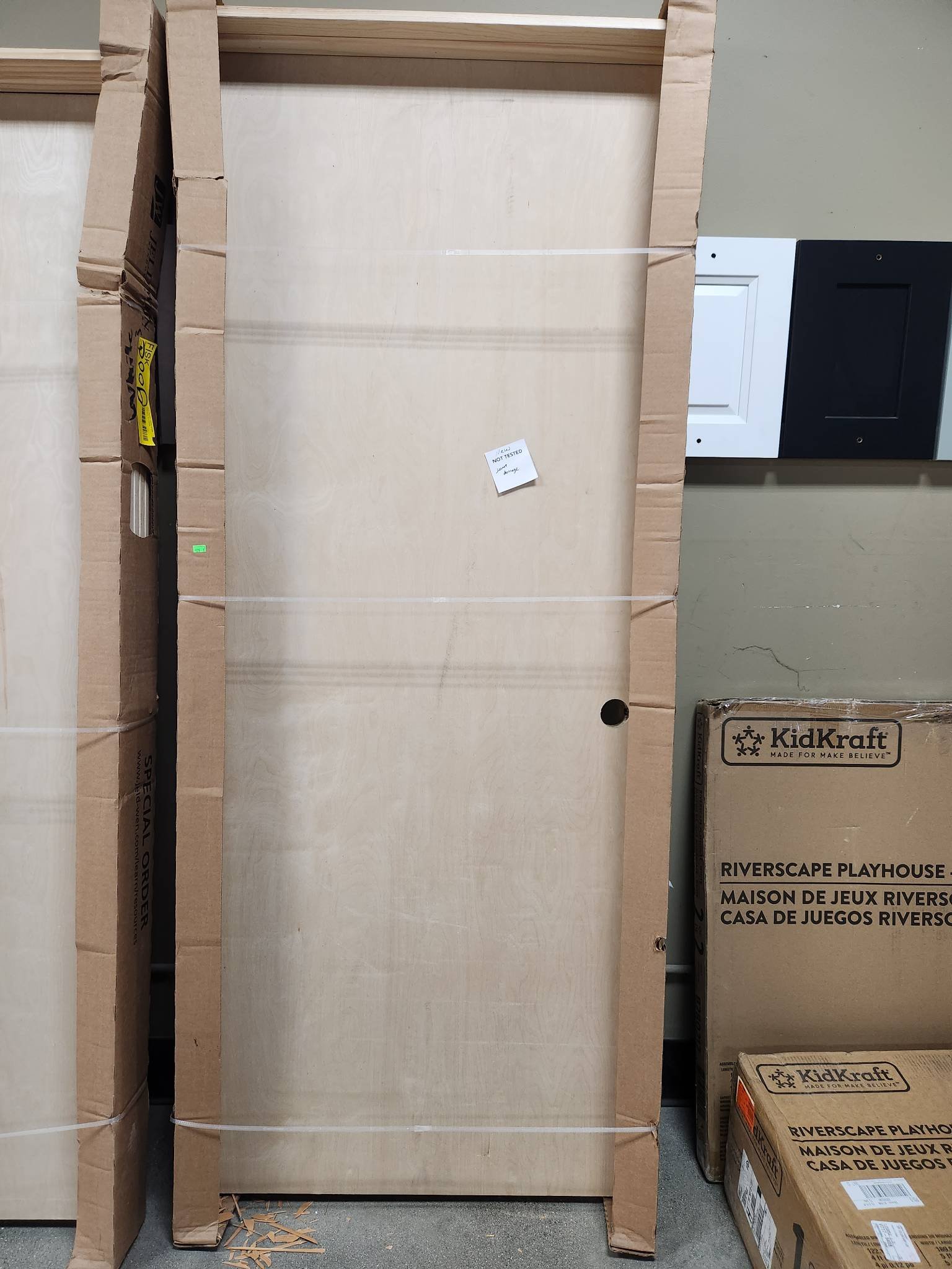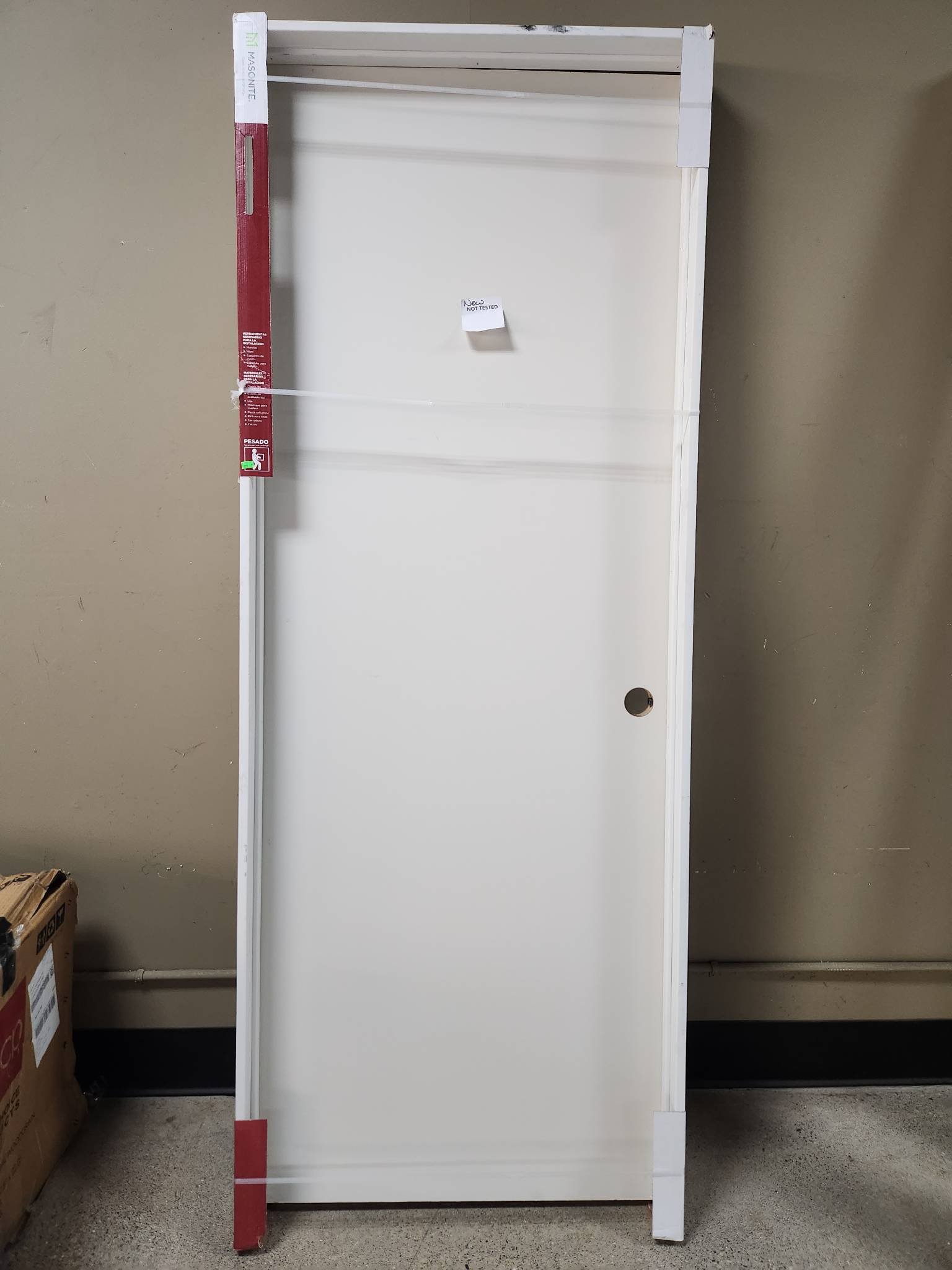 528 Jeld wen Unfinished Left Inswing Prehung Door 31? x 79? has minor damage at bottom