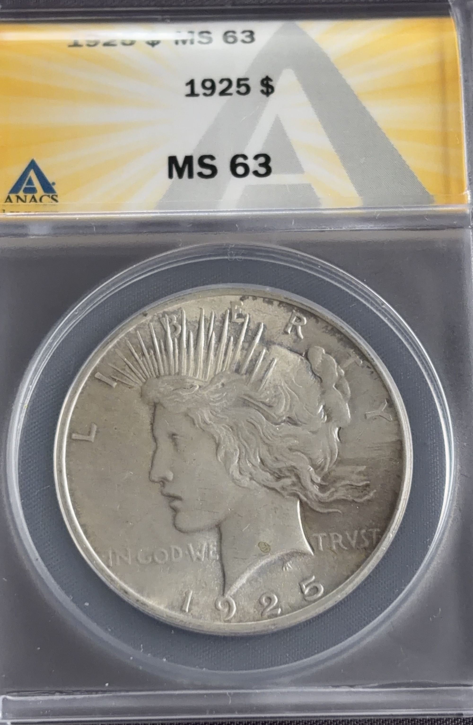 3430 1925 Peace Silver Dollar ANACS MS-63
