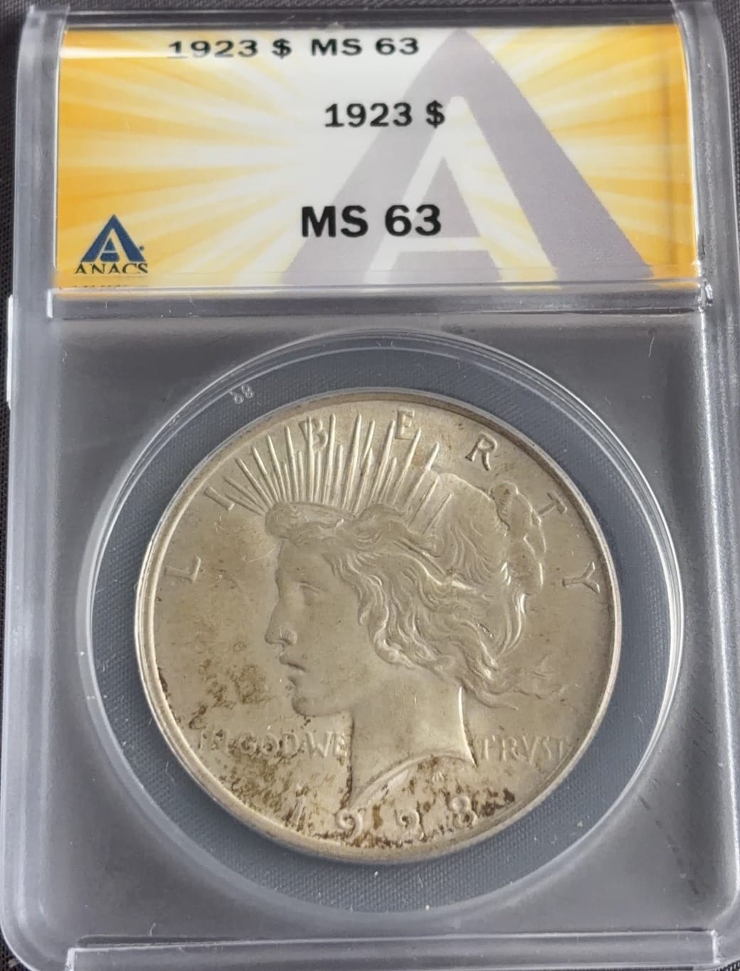 3431 1923 Peace Silver Dollar ANACS MS-63