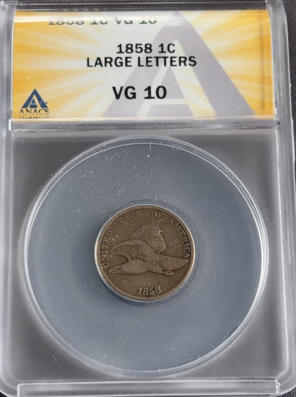 3435 1858 Flying Eagle Cent Large Letters ANACS VG-10