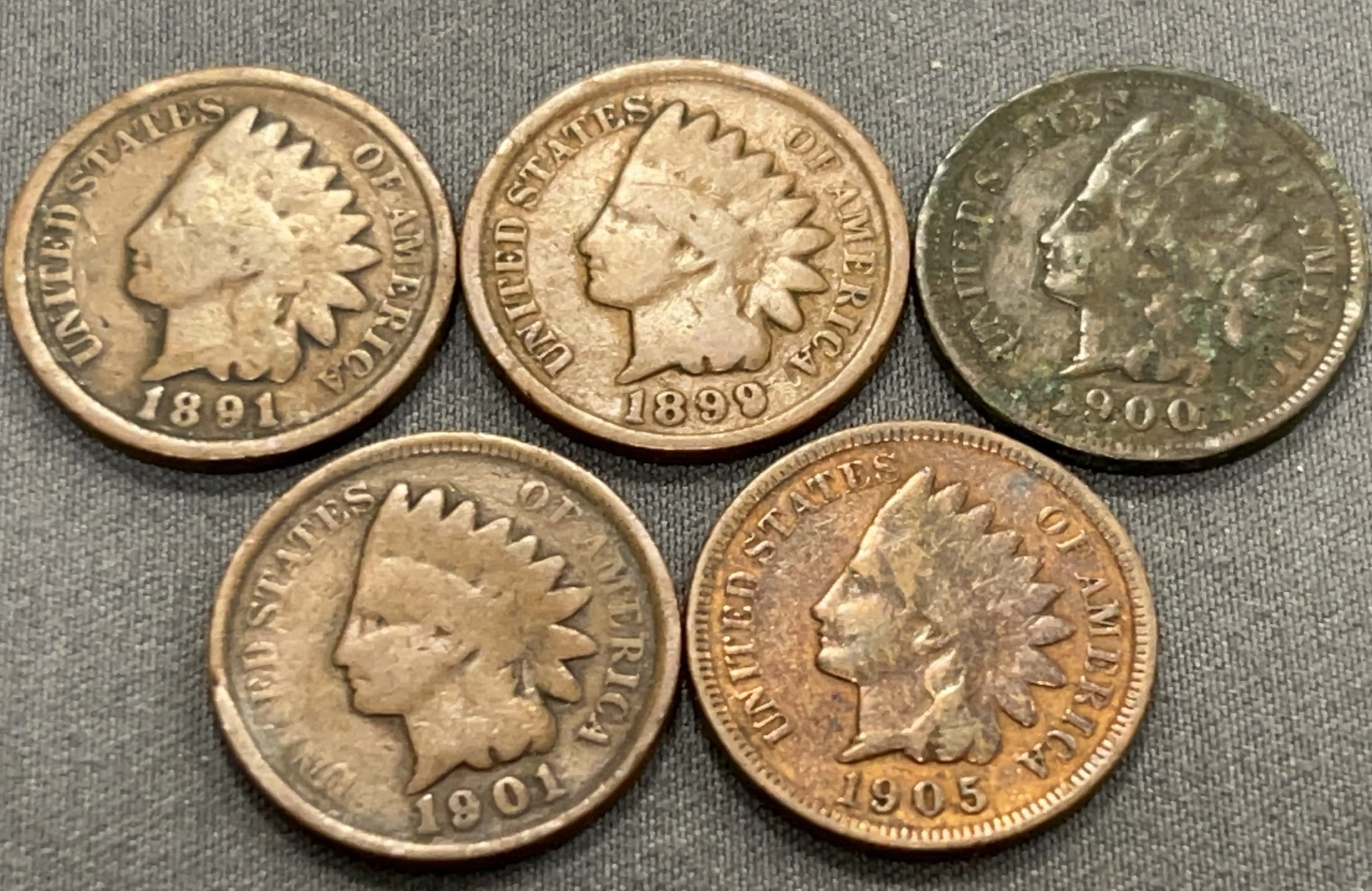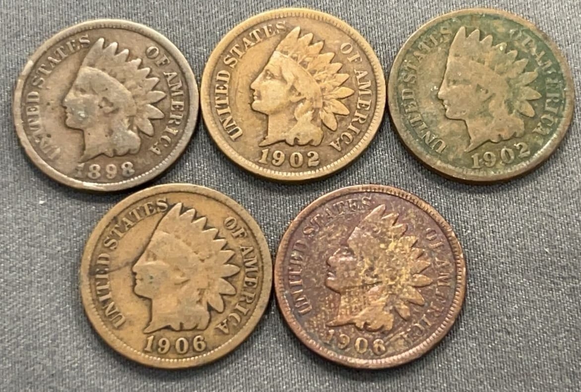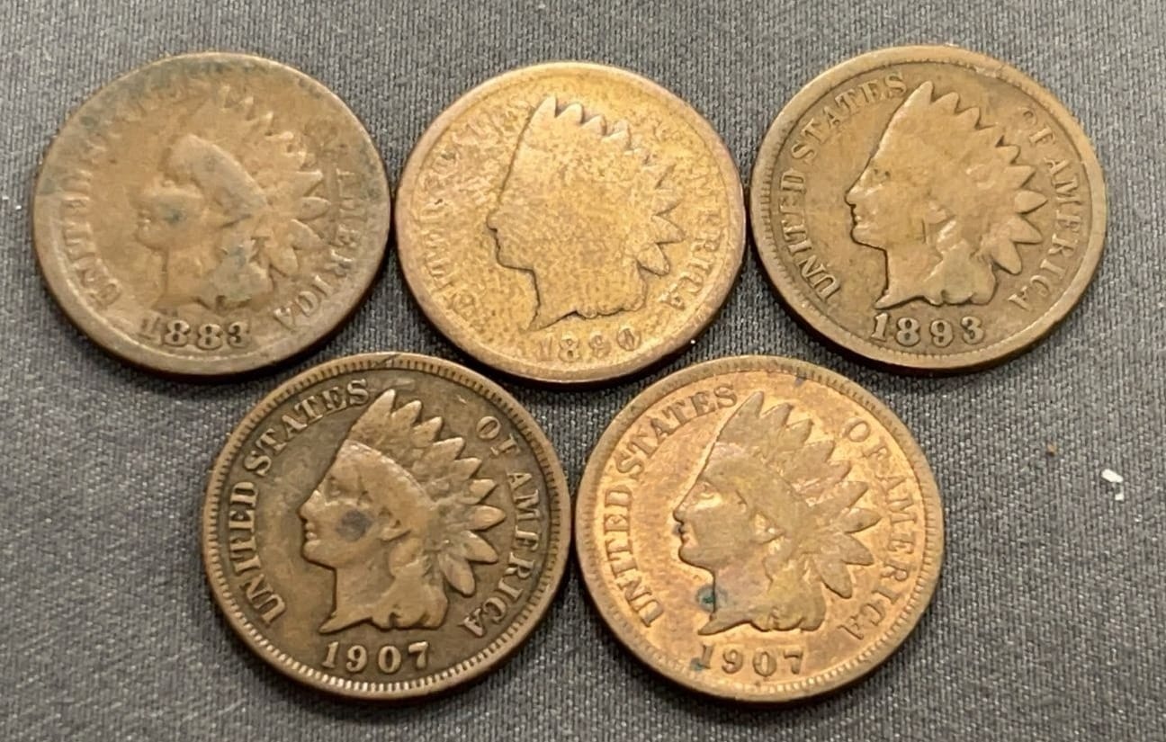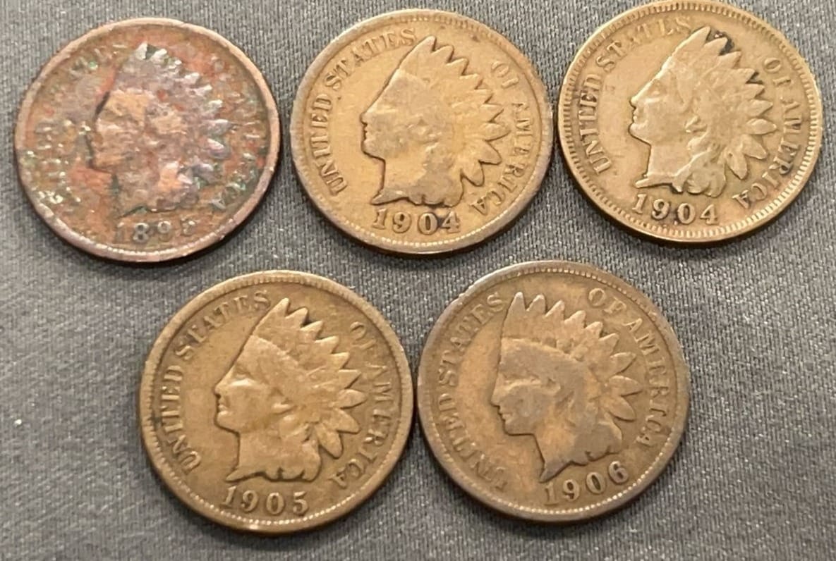 3510 5 Indian Head Pennies 1888-1904