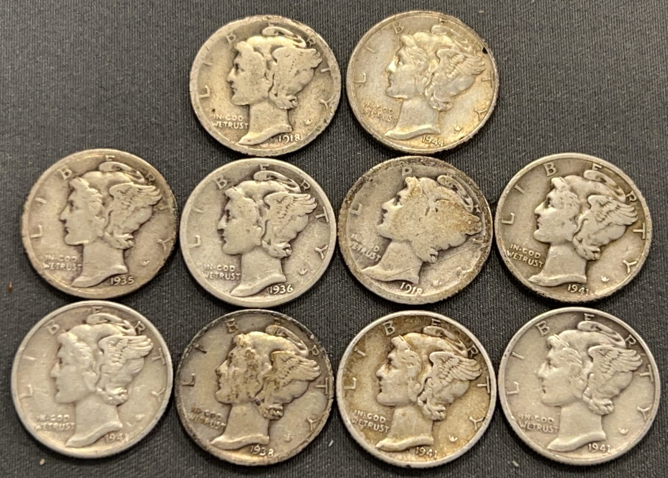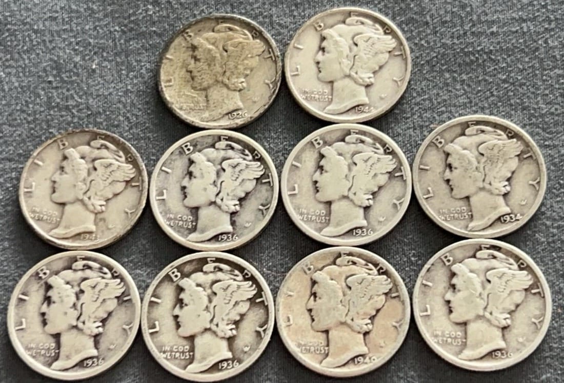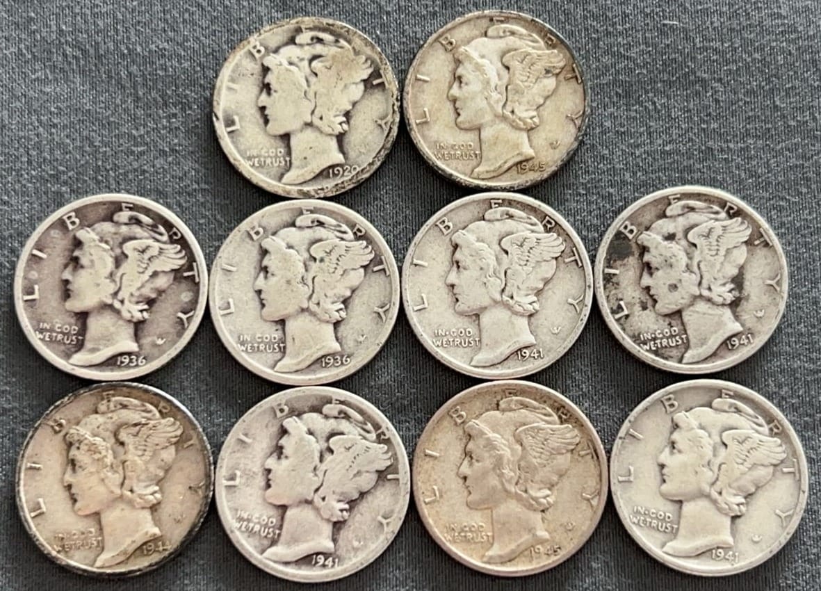 3537 10 Mercury Dimes 1918-1944