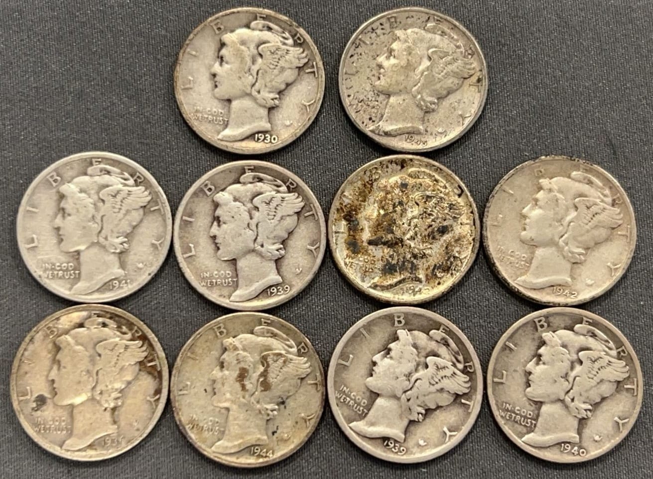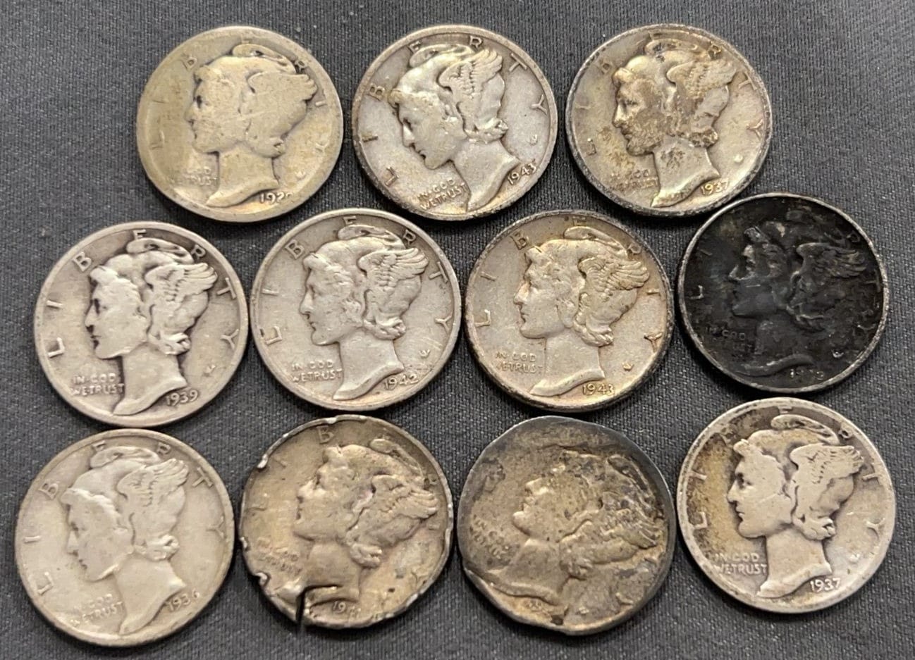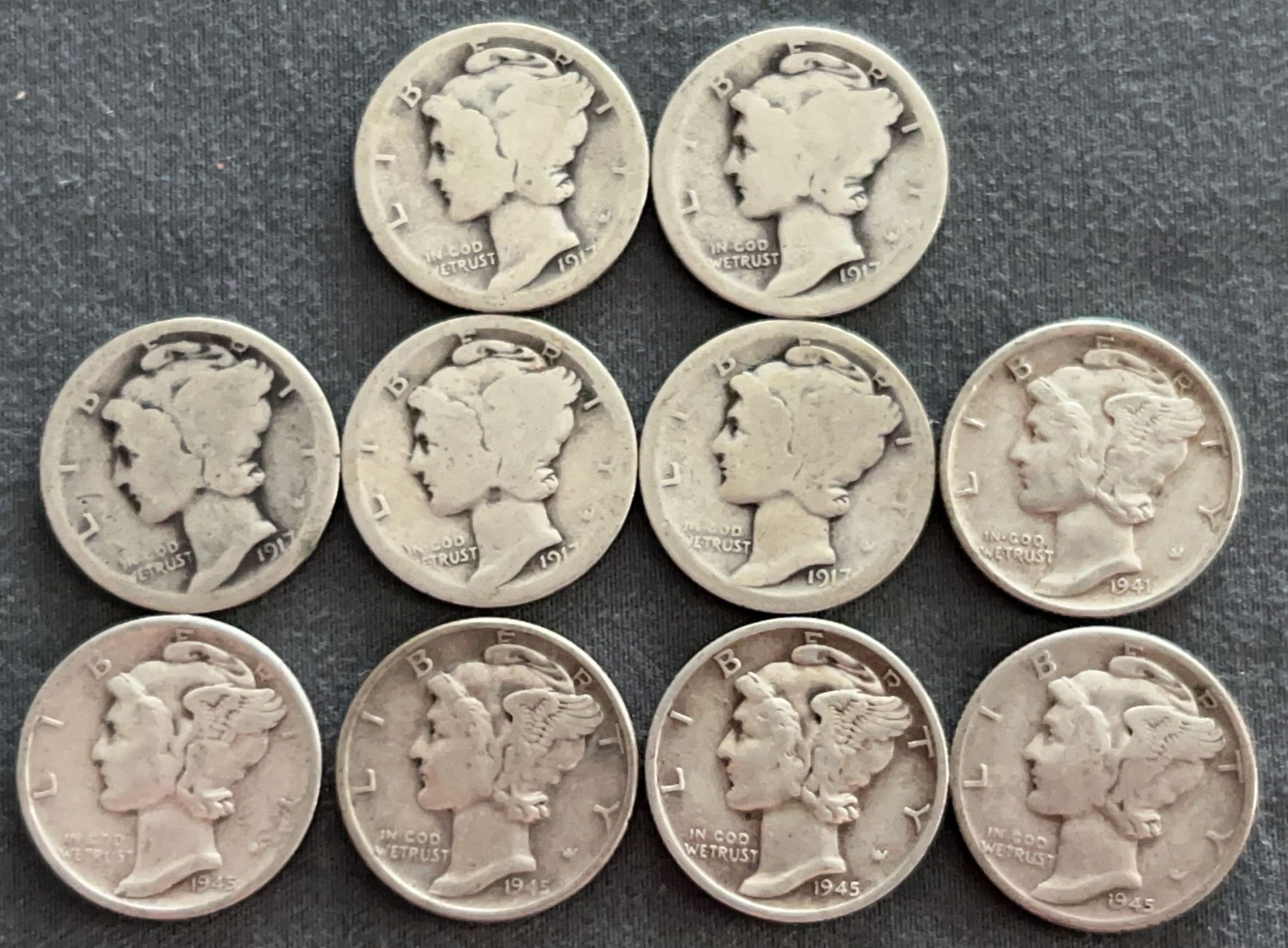3537 10 Mercury Dimes 1918-1944