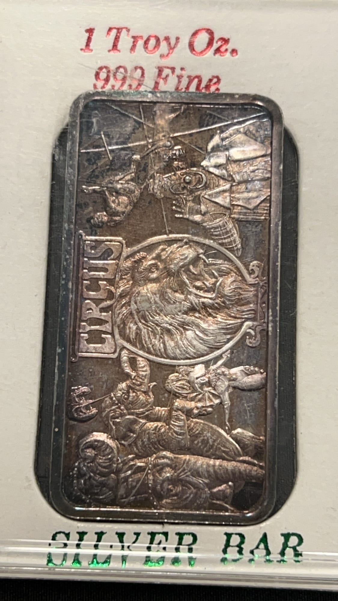 3534 1 Troy Ounce Silver Bar Depicting a Circus