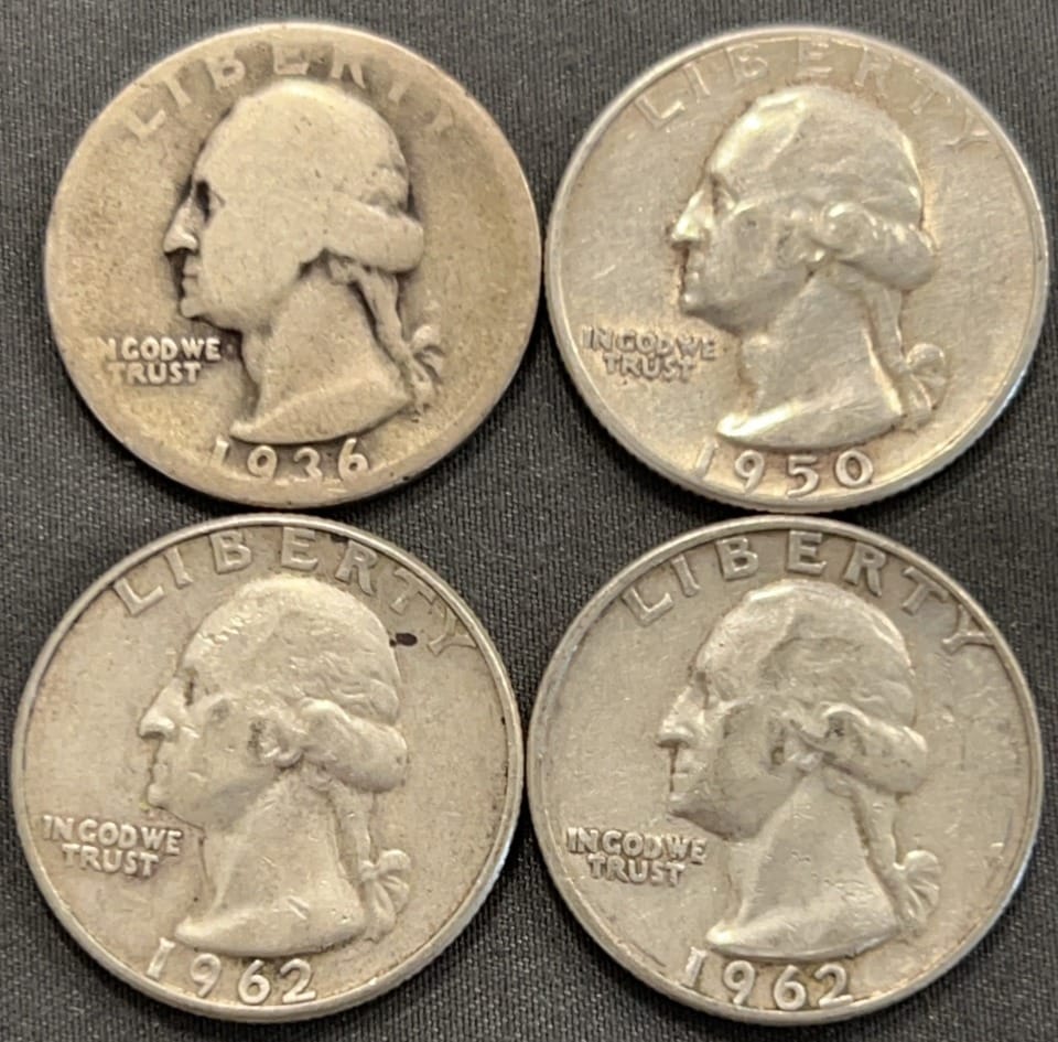 3544 4 Washington Quarters 1936-1962
