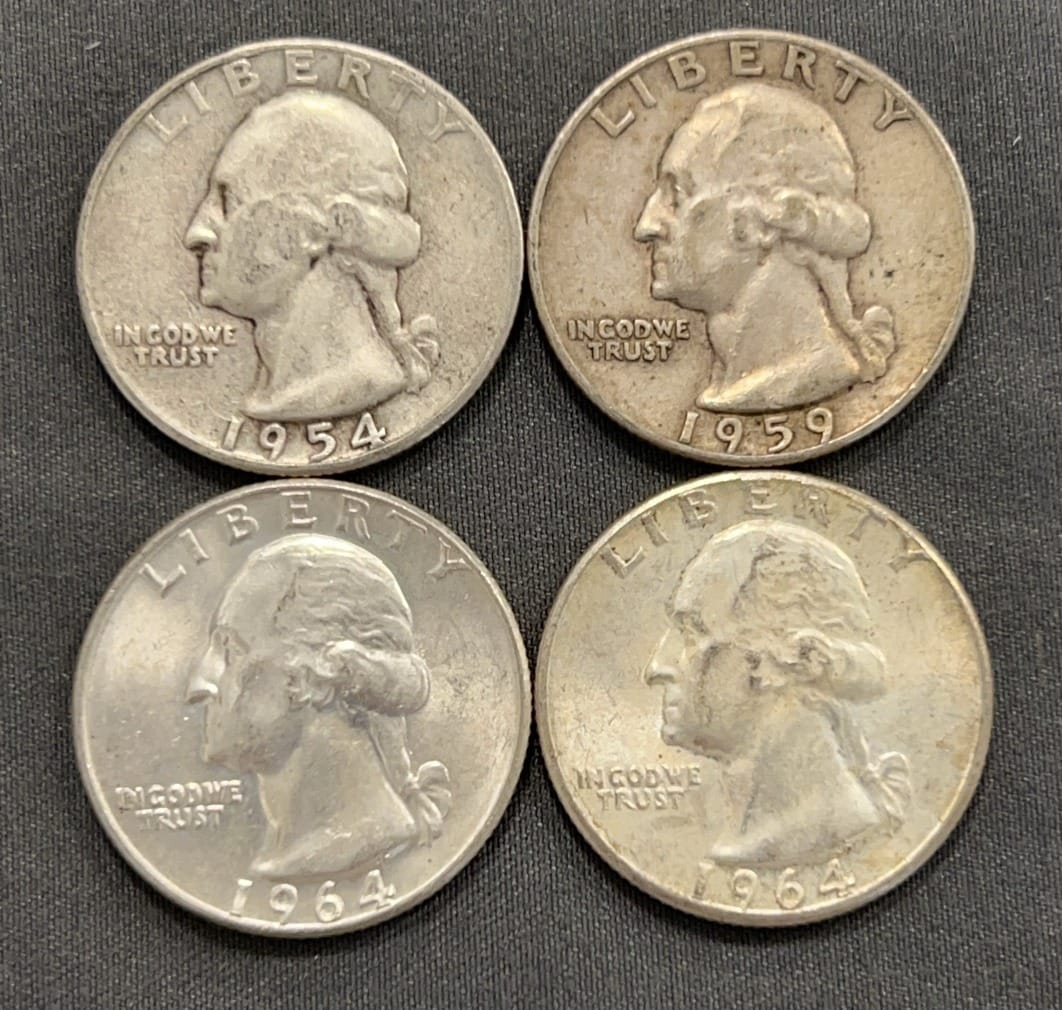 3554 4- Washington Quarters 1954-D,1959-D,1964-D & P