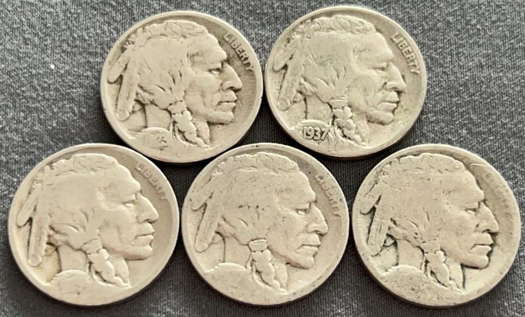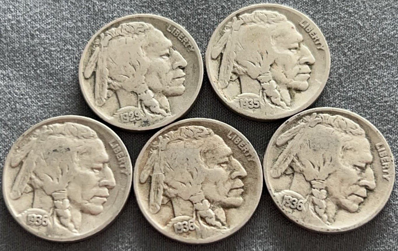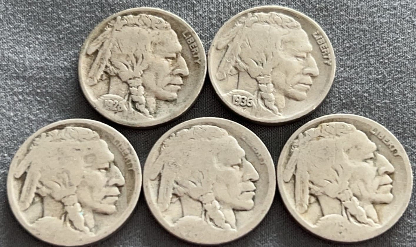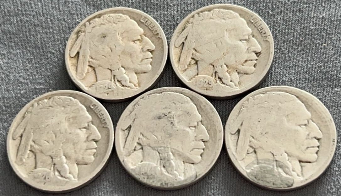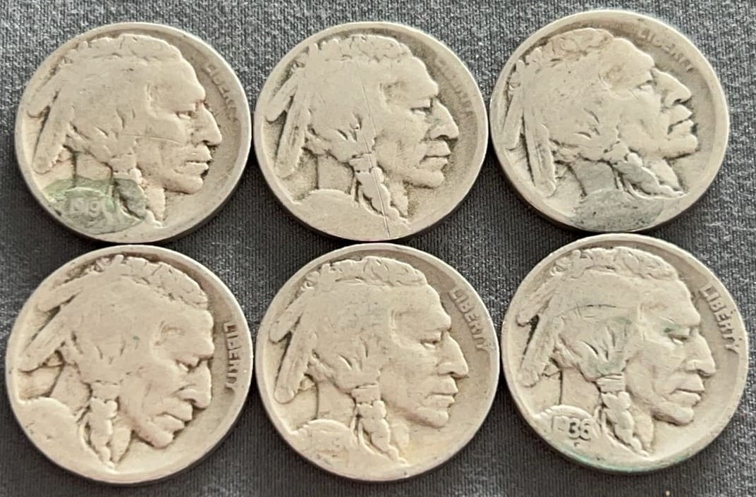 4322 6 Buffalo Nickels 1920-1929