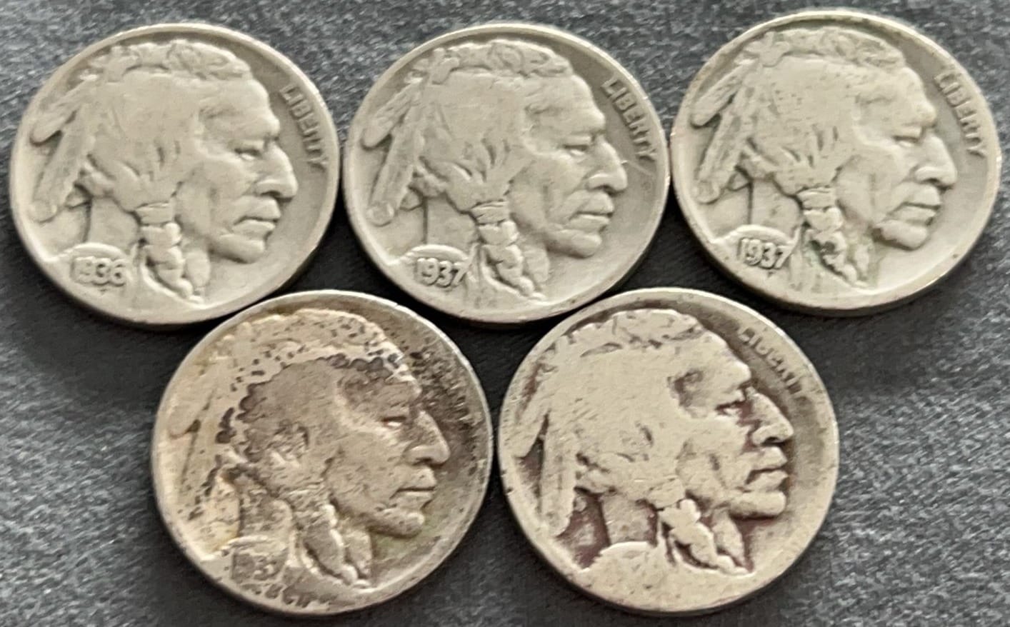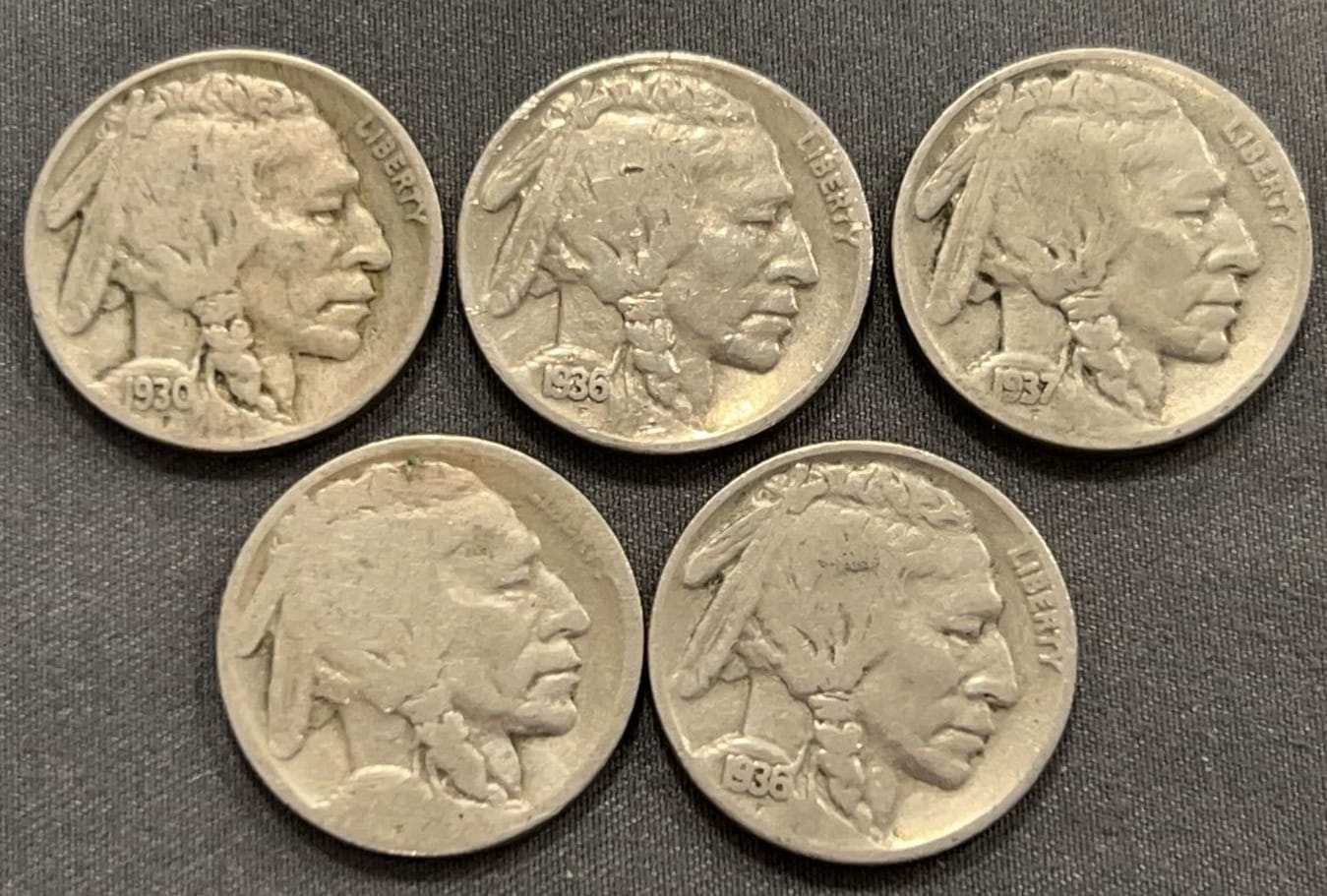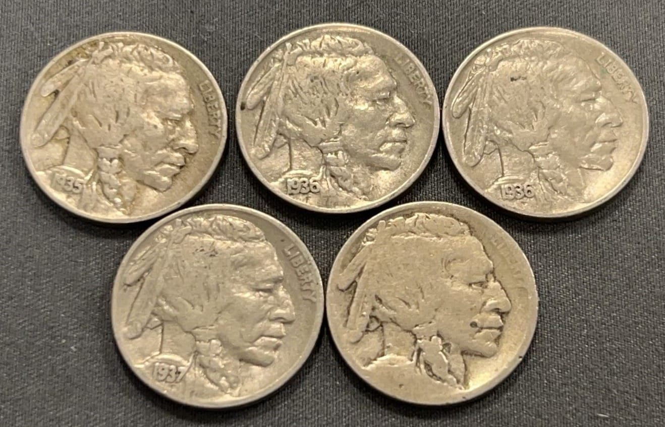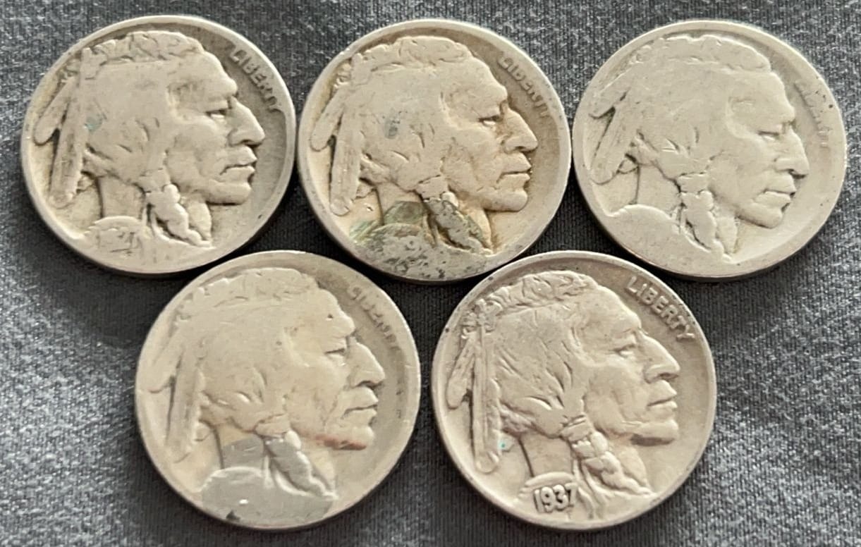 4322 6 Buffalo Nickels 1920-1929